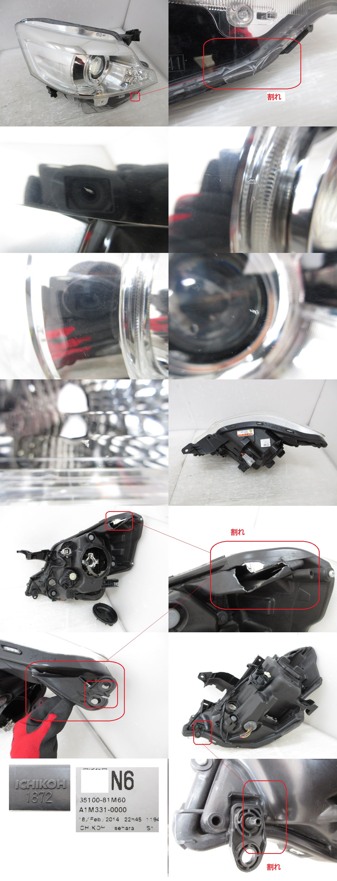 【即決有】 ジャンク スズキ スペーシア カスタム MK32S MK42S 純正 右 ヘッド ライト HID ICHIKOH 1872 打刻 N6 (B041268) 收藏