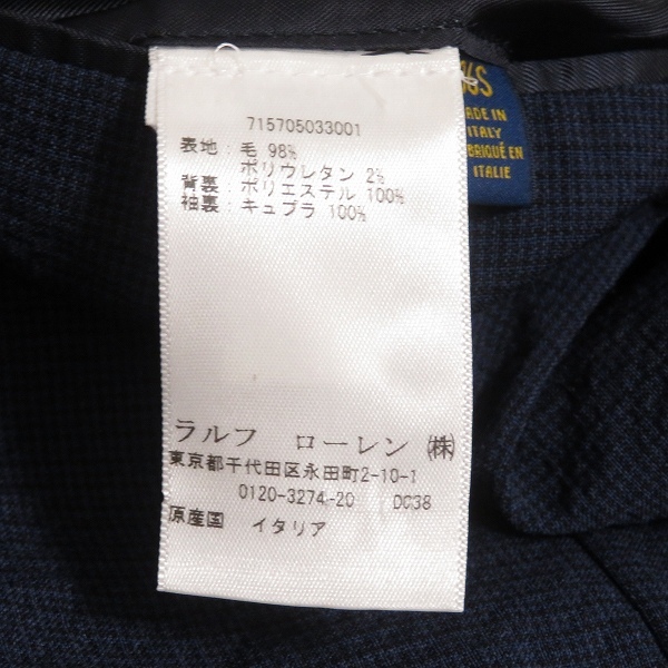 #anc ポロラルフローレン POLO RALPH LAUREN シングルジャケット S 紺 S3B 背抜き サイドベンツ 薄手 イタリア製 メンズ [919475] 收藏