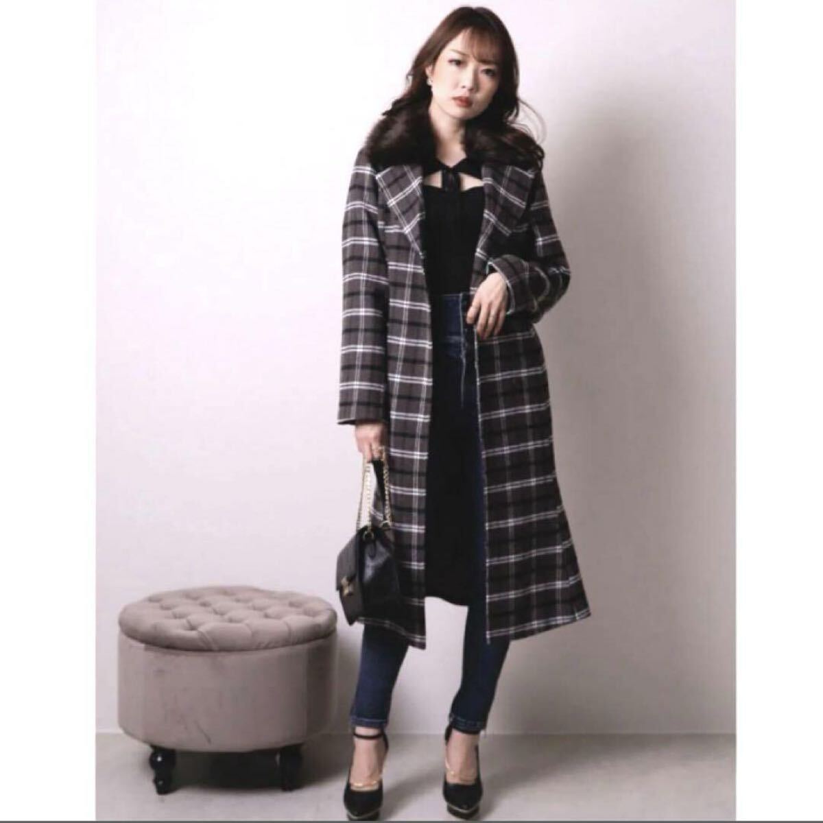 ファーカラー マーメイドコート ミックス ロングコート ウール チェック ファー 收藏