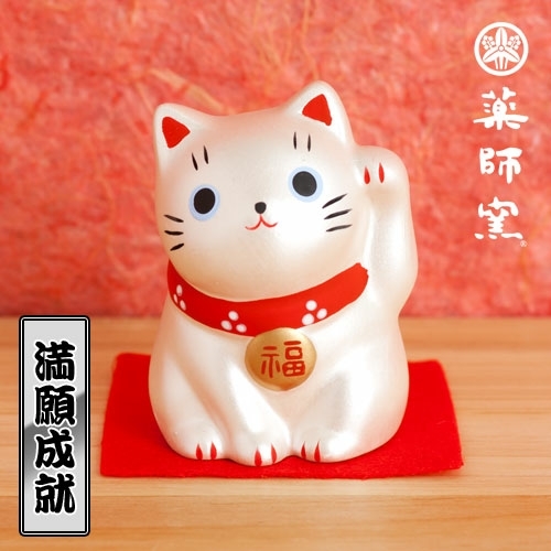 ネコ 薬師窯 福おいで 招き猫 銀色 小さい 満願成就 銀 ねこ 飾り インテリア 置物 風水 幸運 厄除け シルバー かわいい ねこ ミニサイズ 收藏