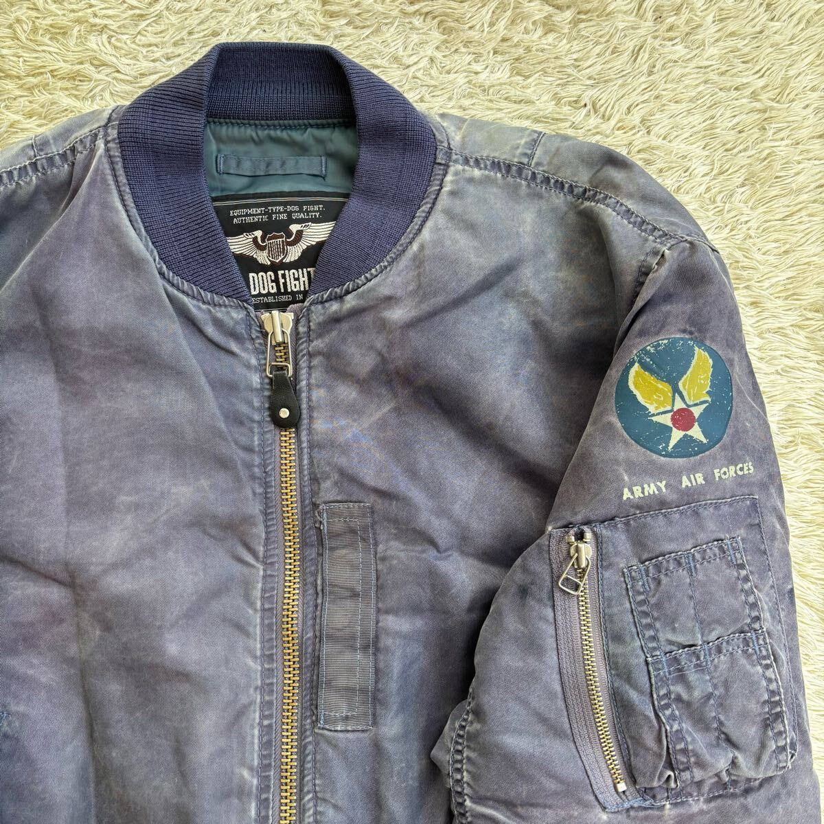 アーミーエアフォースのエンブレムが施されたパープルのMA-1フライトジャケット。| 出价者 | 信用 | 价格 | 时间 |
