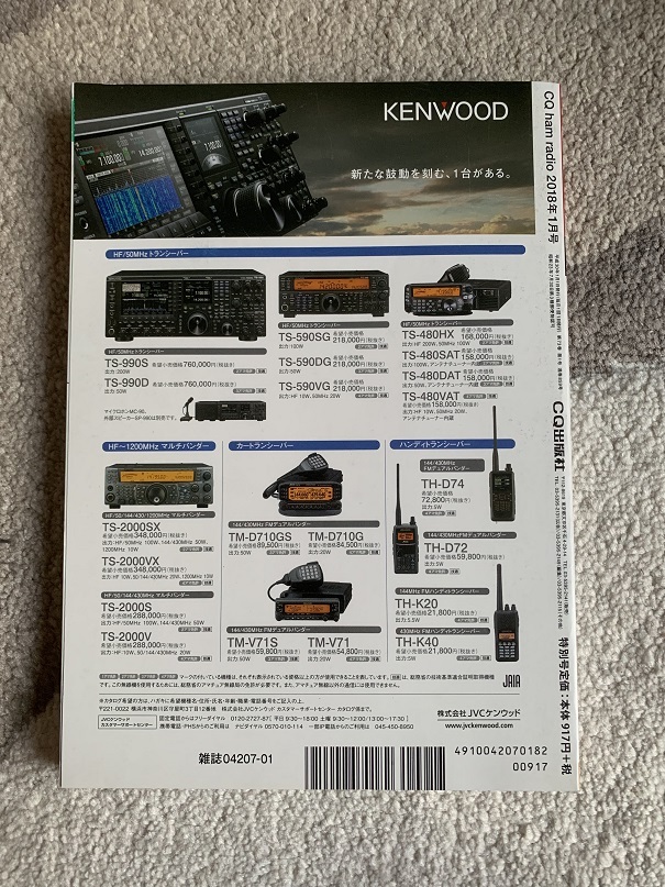 CQ ham radio CQ誌 2018年 平成30年1月号 裏表紙TS-990 TS-590 TS-2000 TM-D710GS TH-D74等 現状で 收藏