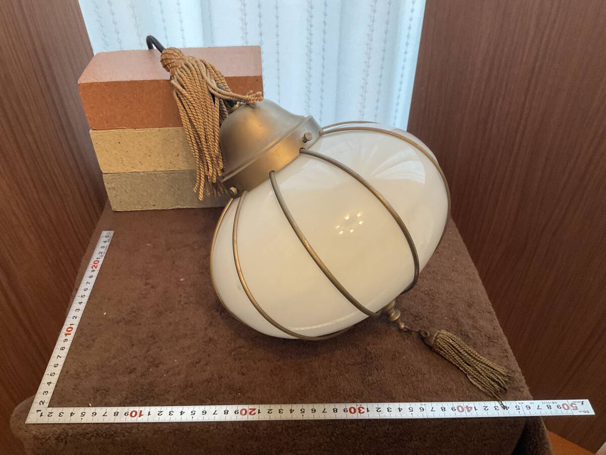 即決【大正浪漫びいどろ屋】乳白ガラスぼんぼり照明 房付き アンティーク 電笠 リフォーム 古民家 カフェ 收藏