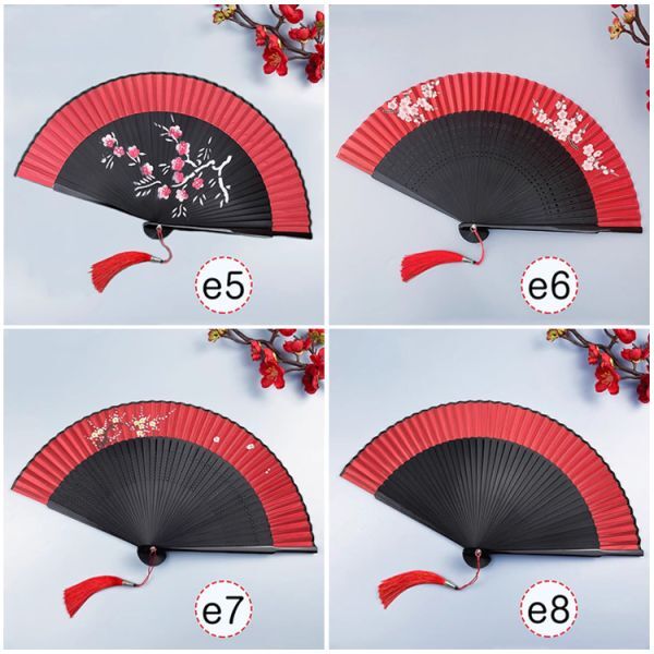 (e2番)女性用 せんす 和装小物 扇子 女物 レディース 扇子 おしゃれ シルク 丈夫 扇子袋付 赤 レッド 絹扇子 うちわ 和風 おすすめ 高級 收藏