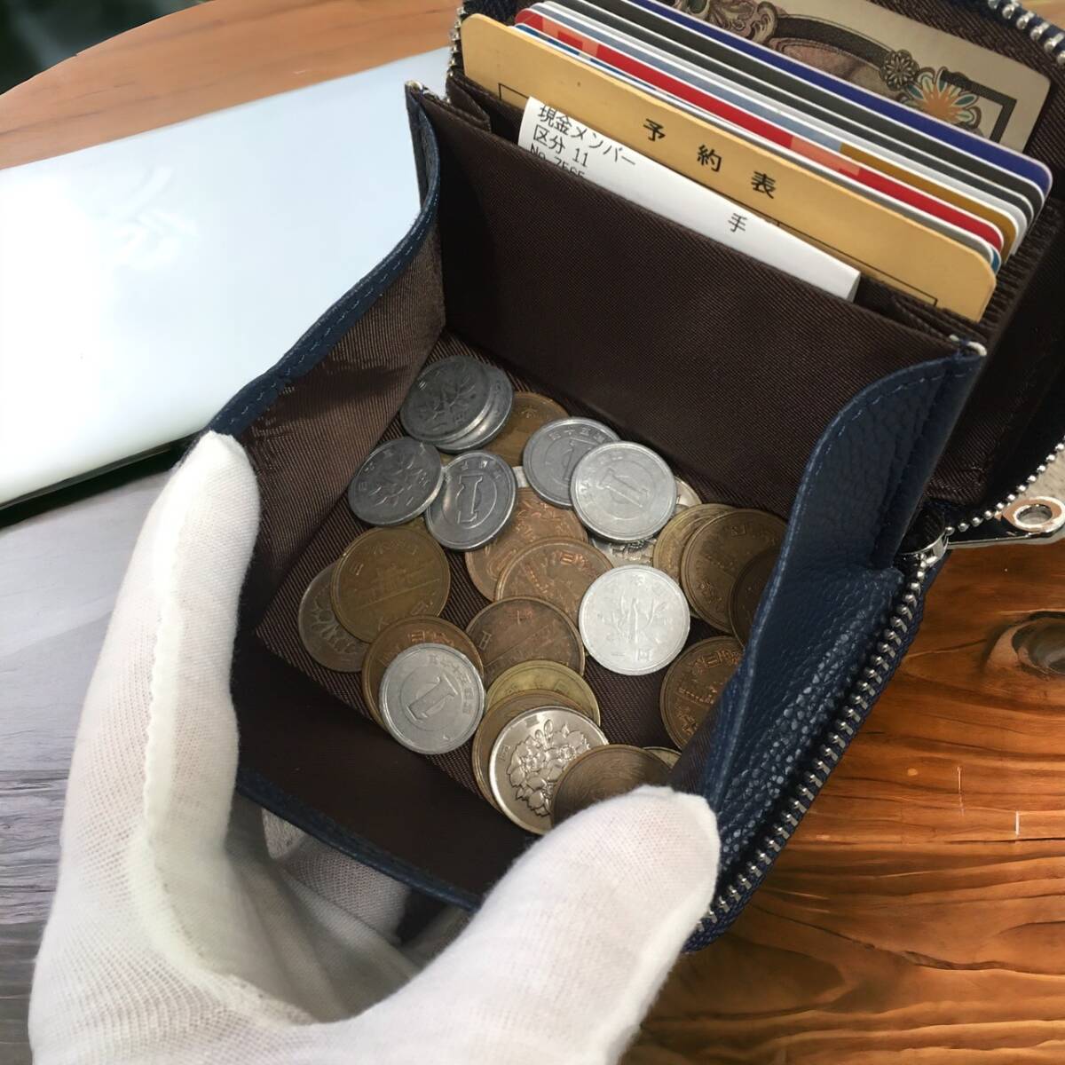 改良版 ミニ財布 メンズ レディース 牛床革 小銭入れ カード ダークブルー 收藏