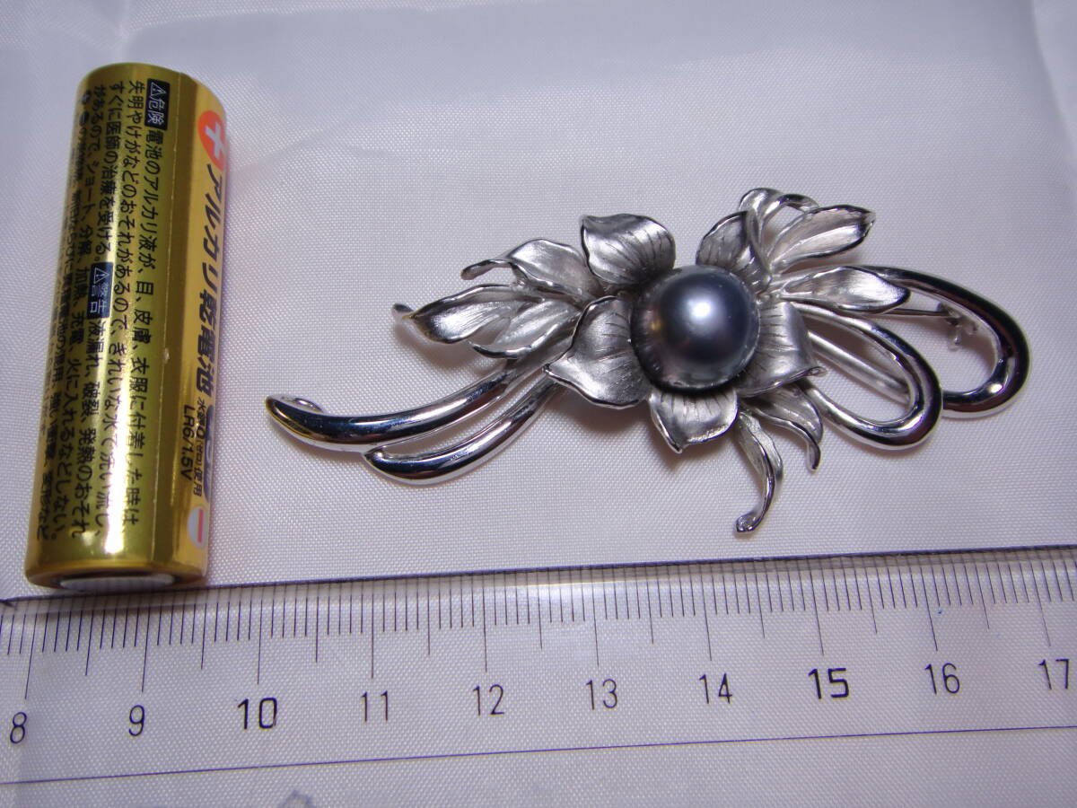 南洋真珠 カラーパール 大玉! 約12㎜玉 ブローチ ネックレストップ 兼用 SILVER刻印 そこそこ良品 約14.88g ヴィンテージ D186 收藏