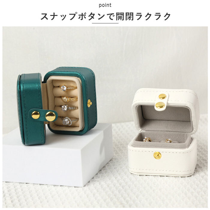 | 商品説明 | ・・持ち運びに便利!コンパクトなアクセサリーケースが新登場。 ・手触り滑らかなフェイクレザー素材。同色系のステッチ刺繍や、ゴールドの金具使いがアクセントに。 ・スナップボタンで開閉ラクラク。 ・内側には指輪を4つ入れることが可能。 ・内張りはふんわり柔らかな素材。大切なアクセサリーを傷付きから保護◎ ・旅行や出張時に大活躍のアイテム。 |