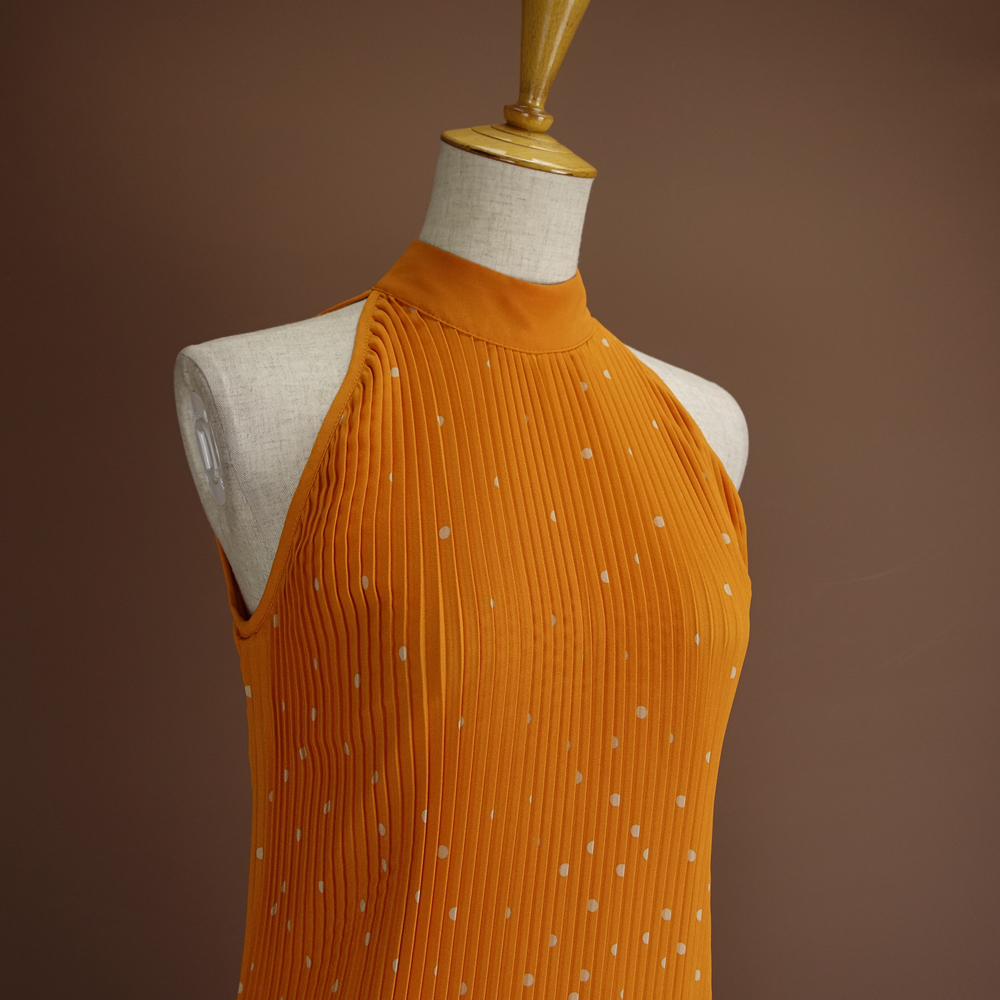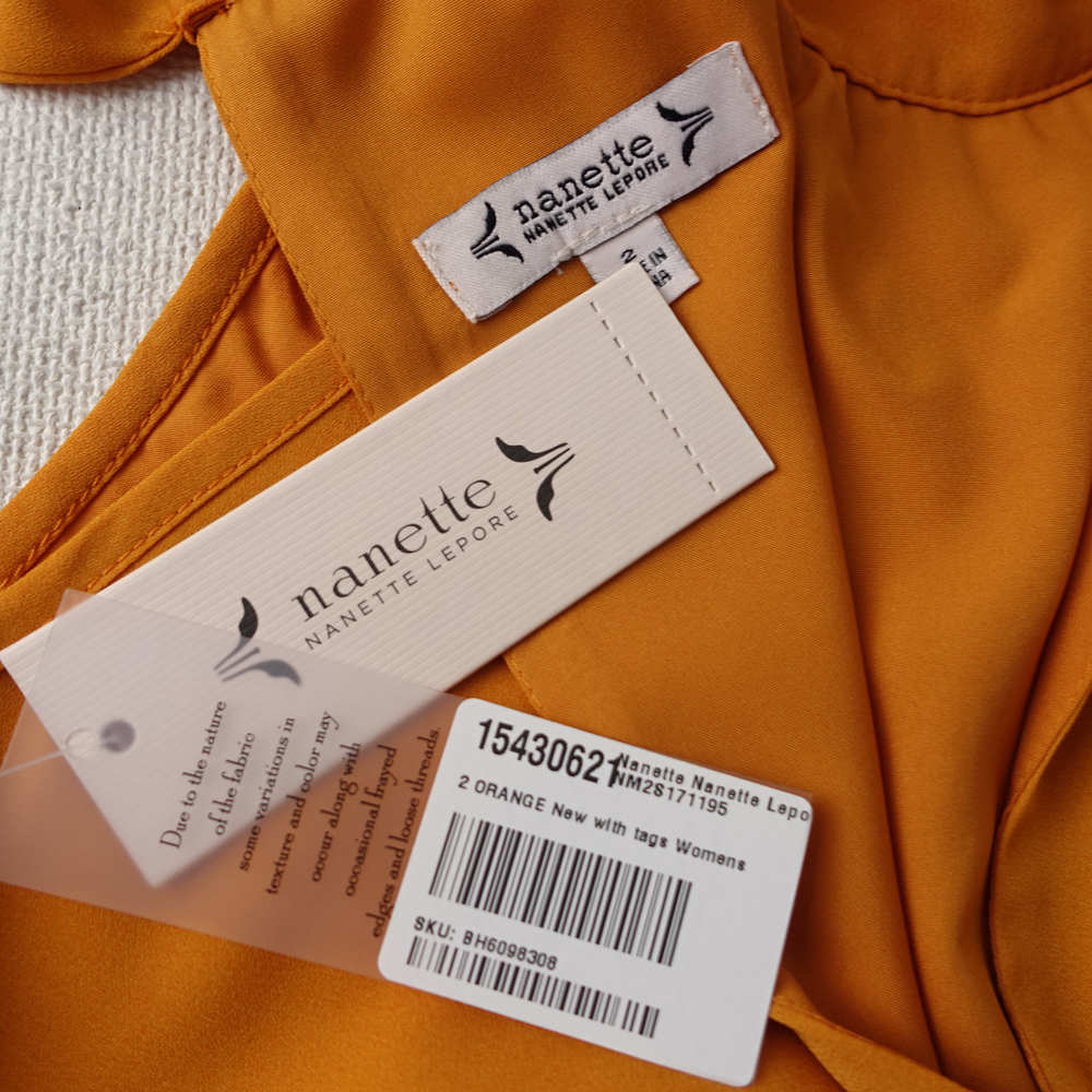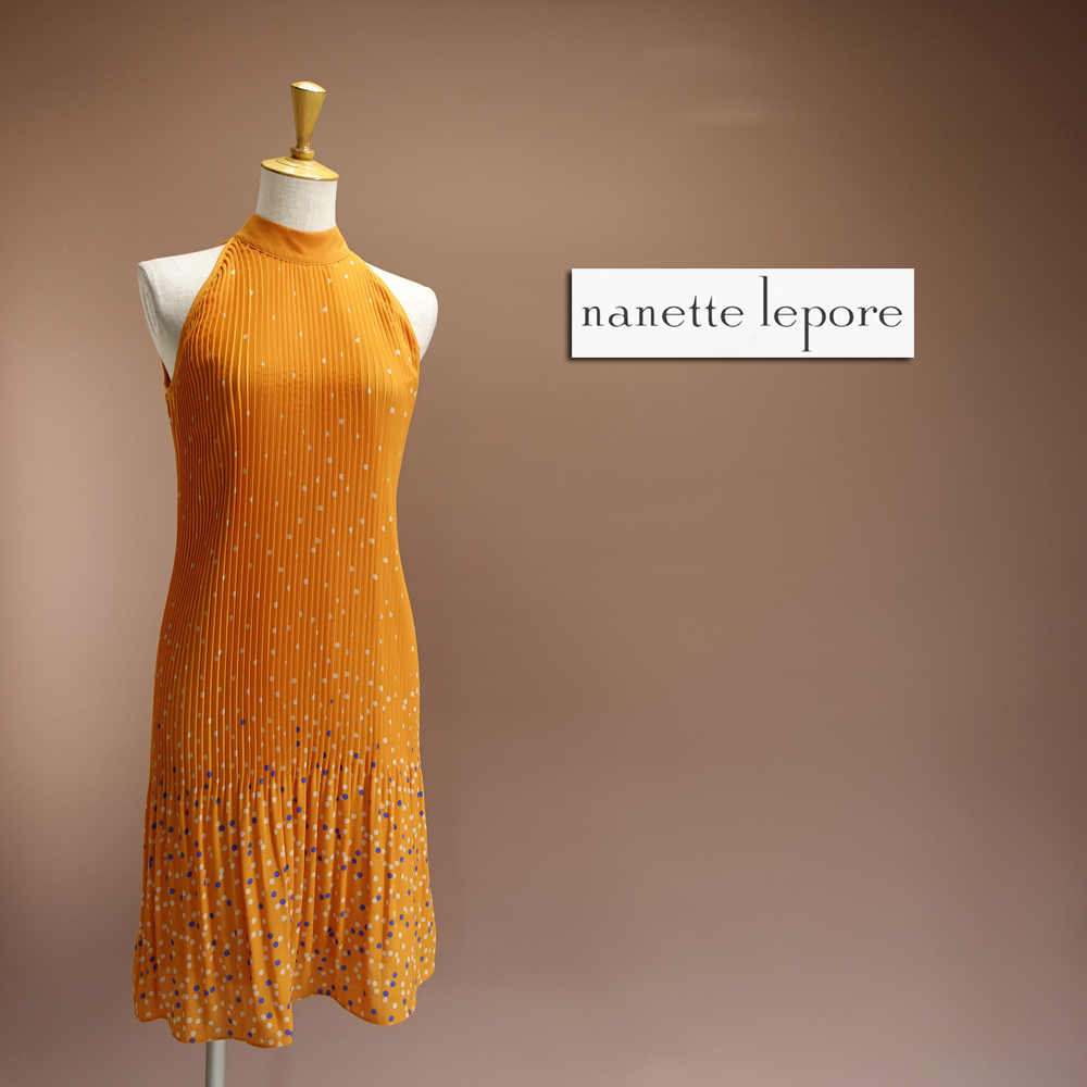 送料185円 新品.ナネットレポー 9号 オレンジ プリーツ リボン ワンピース パーティドレス 華32J0405 收藏