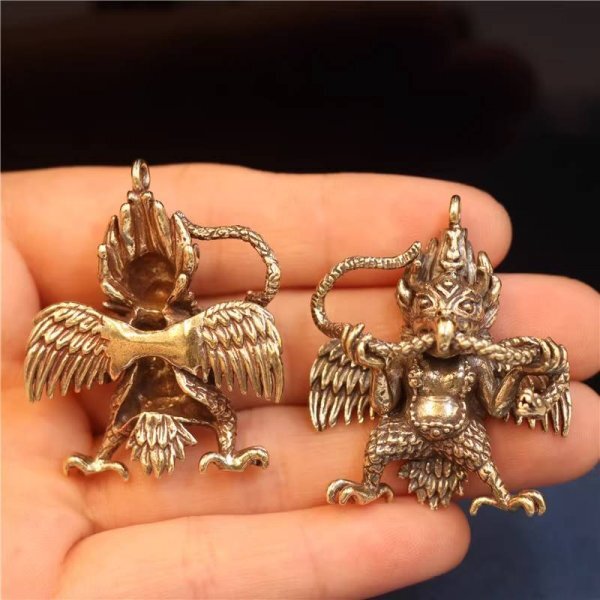 AVALO202505250933-3 七个老婆 純銅製のネパール密教の金翅大鵬鳥 キーホルダー (手工) 收藏