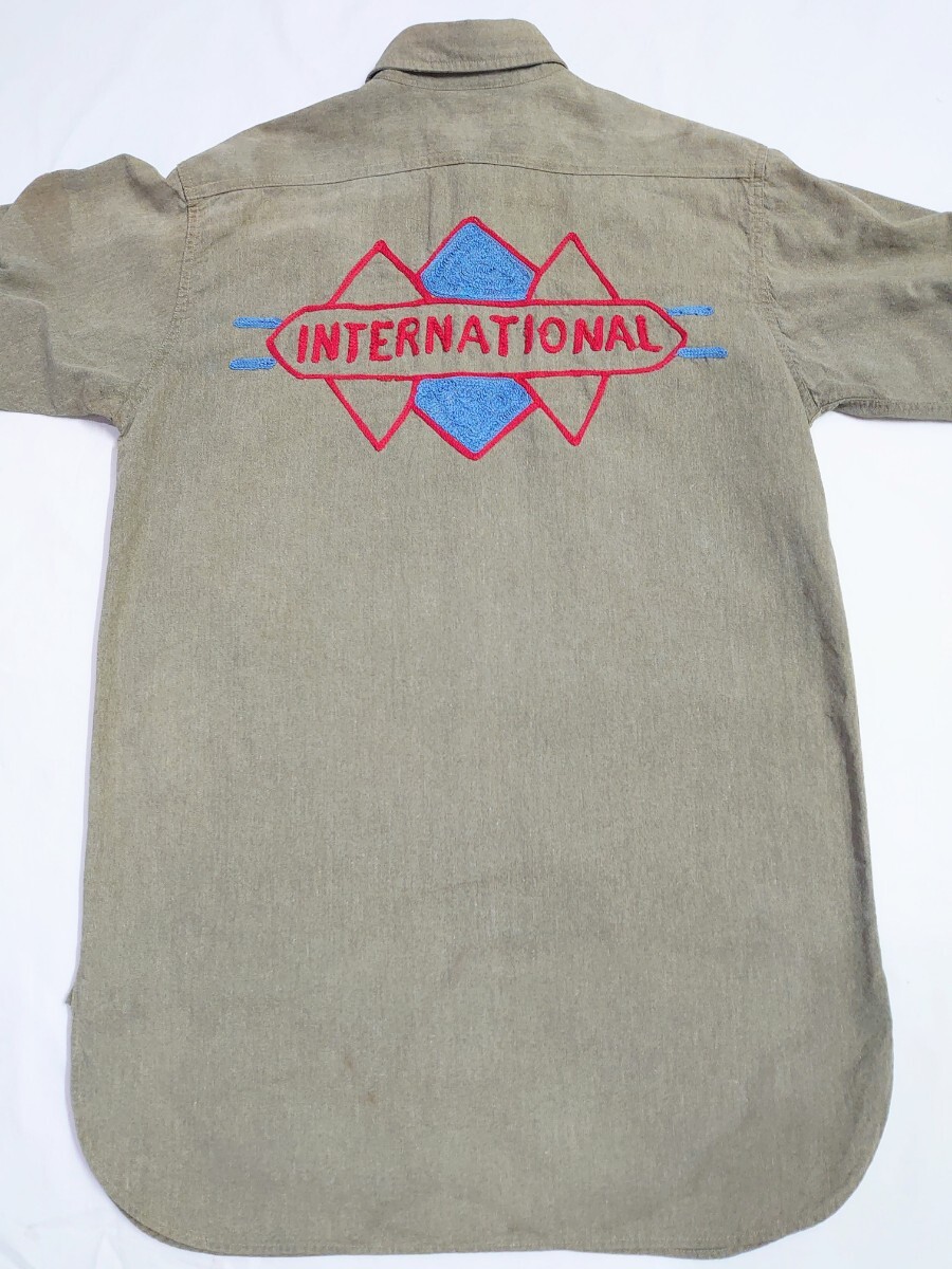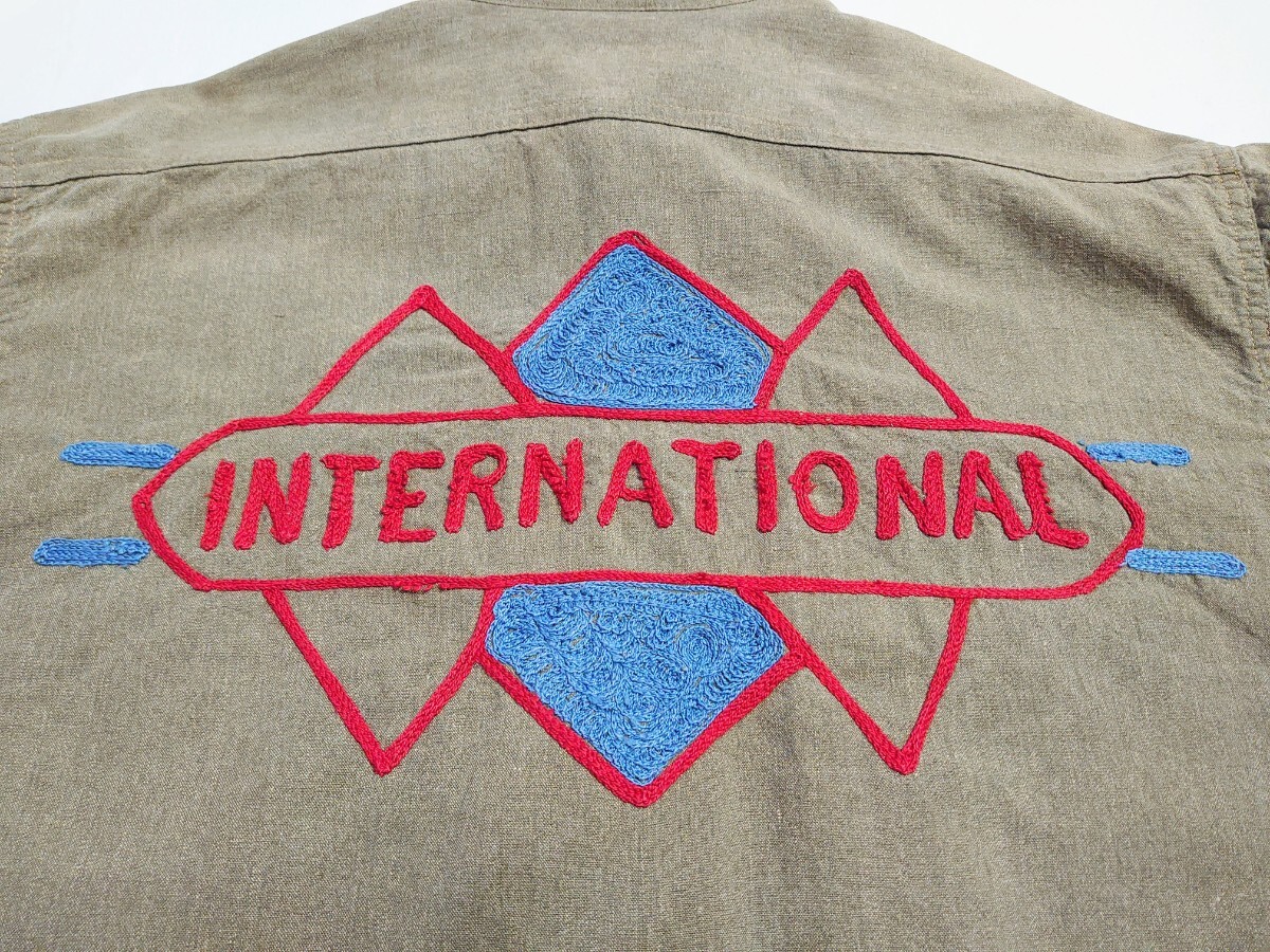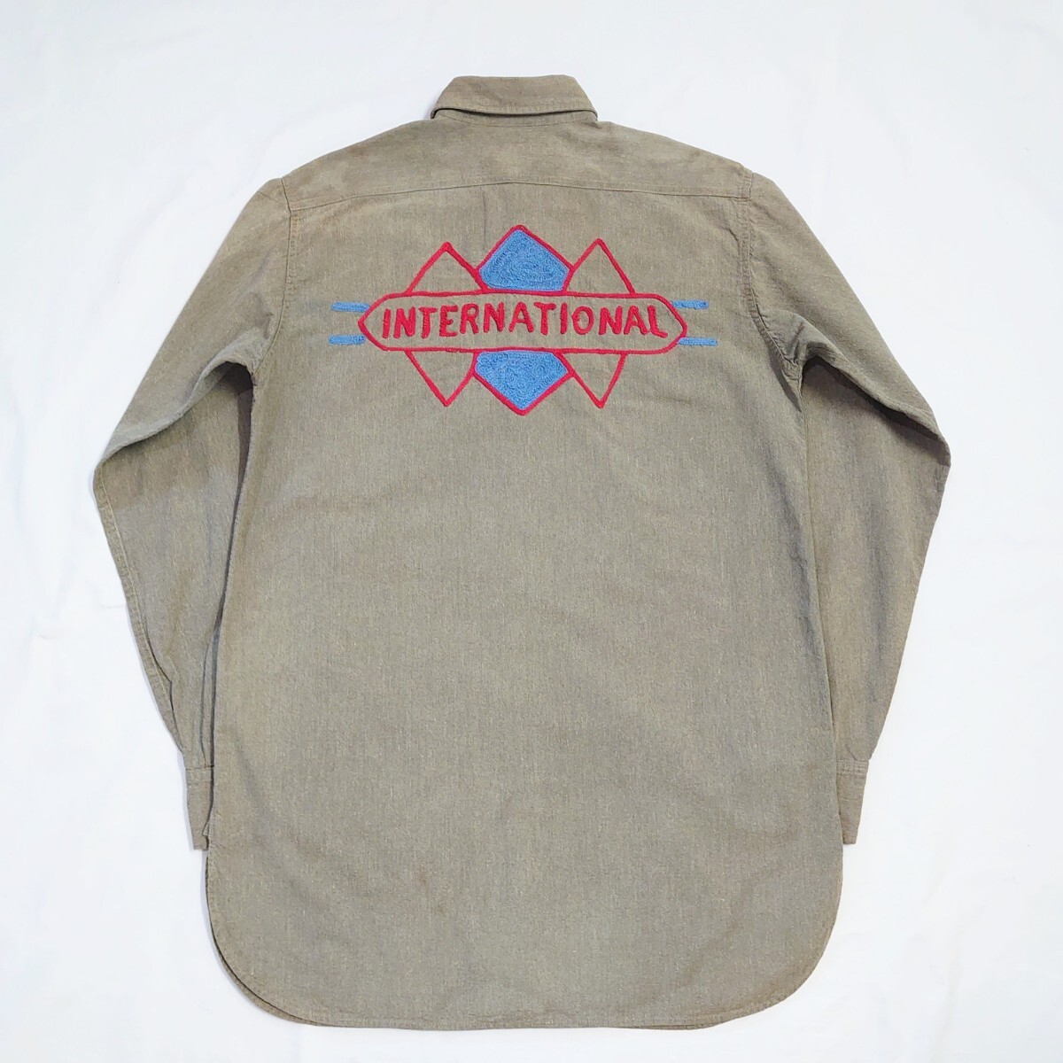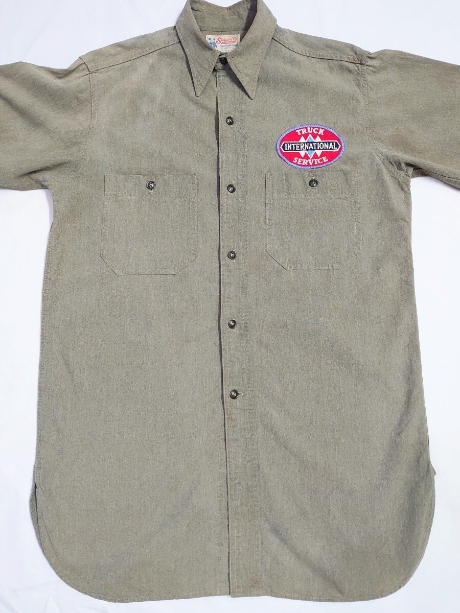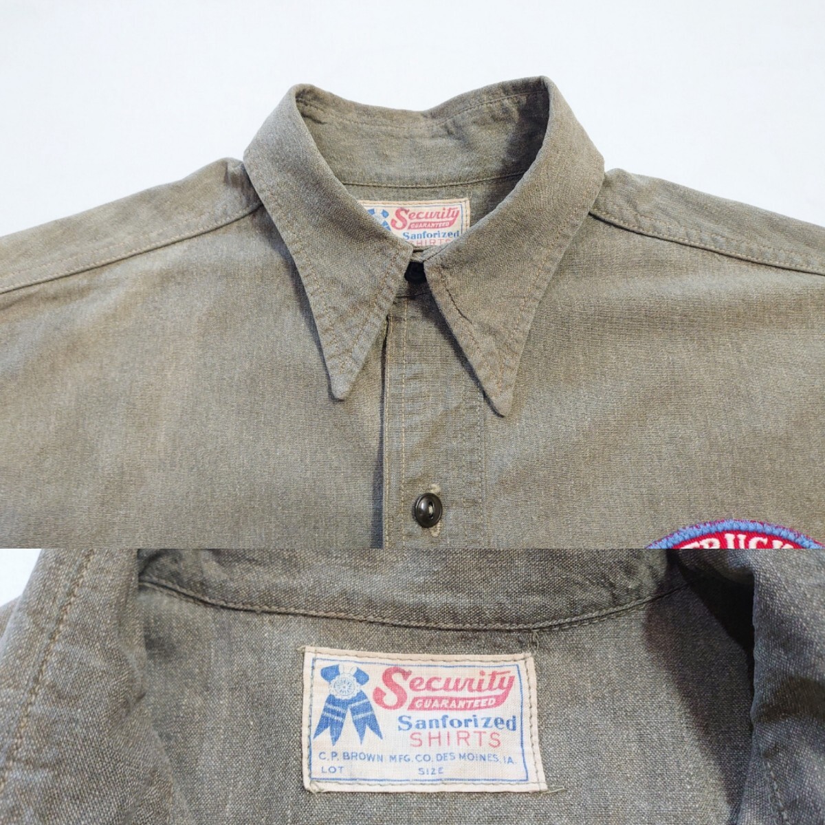40s オリーブドラブシャンブレー オリーブシャンブレー ビンテージシャンブレーシャツ マチ付き チェーンステッチ 50s 30s レア 收藏