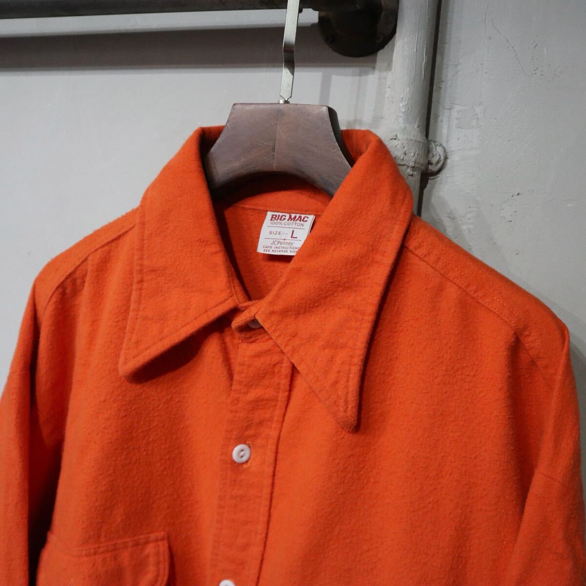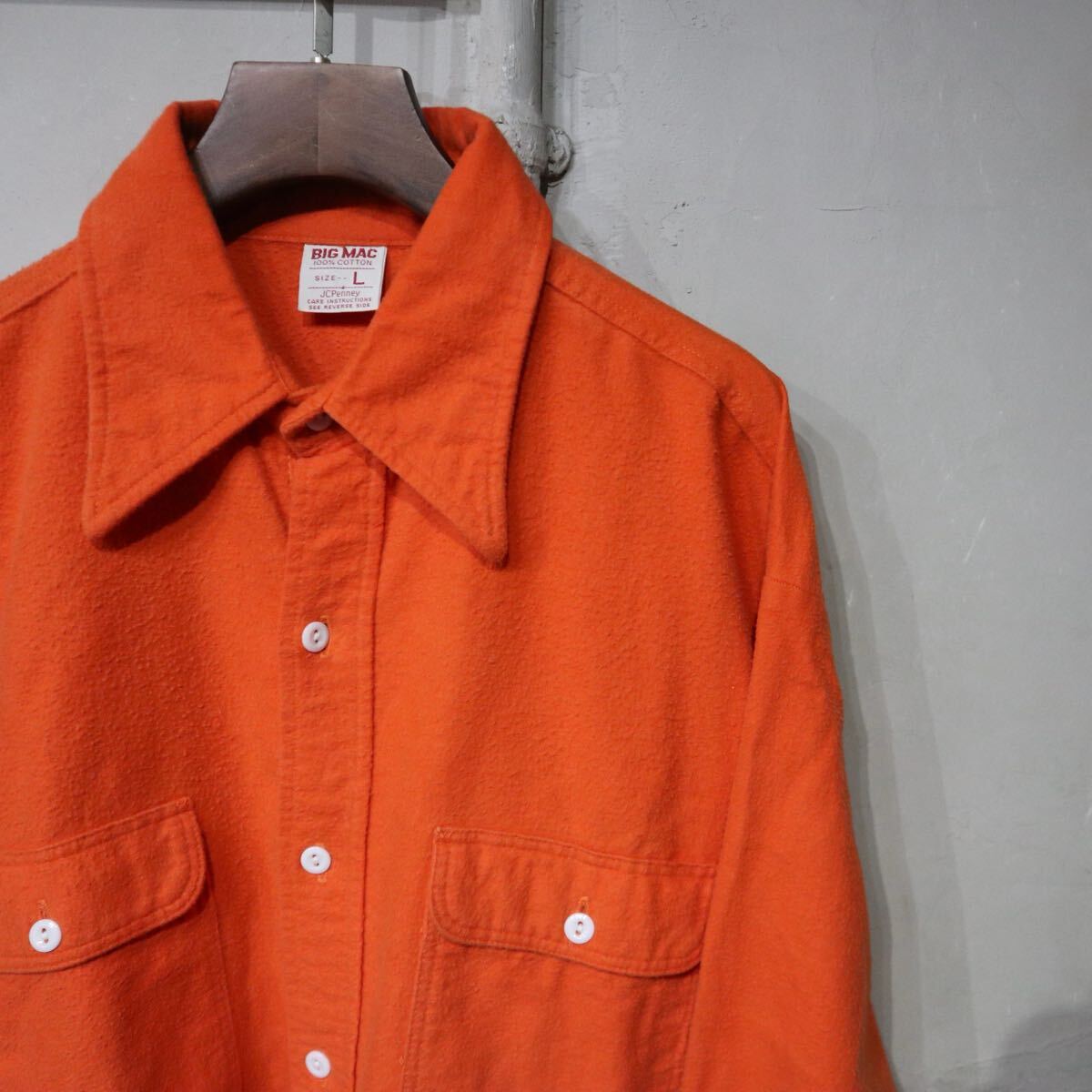 【即決】70s BIG MAC JC Penney ビックマック JCペニー シャモアクロス シャツ オレンジ 単色 オールドタグ アメリカ古着 ヴィンテージ L 收藏