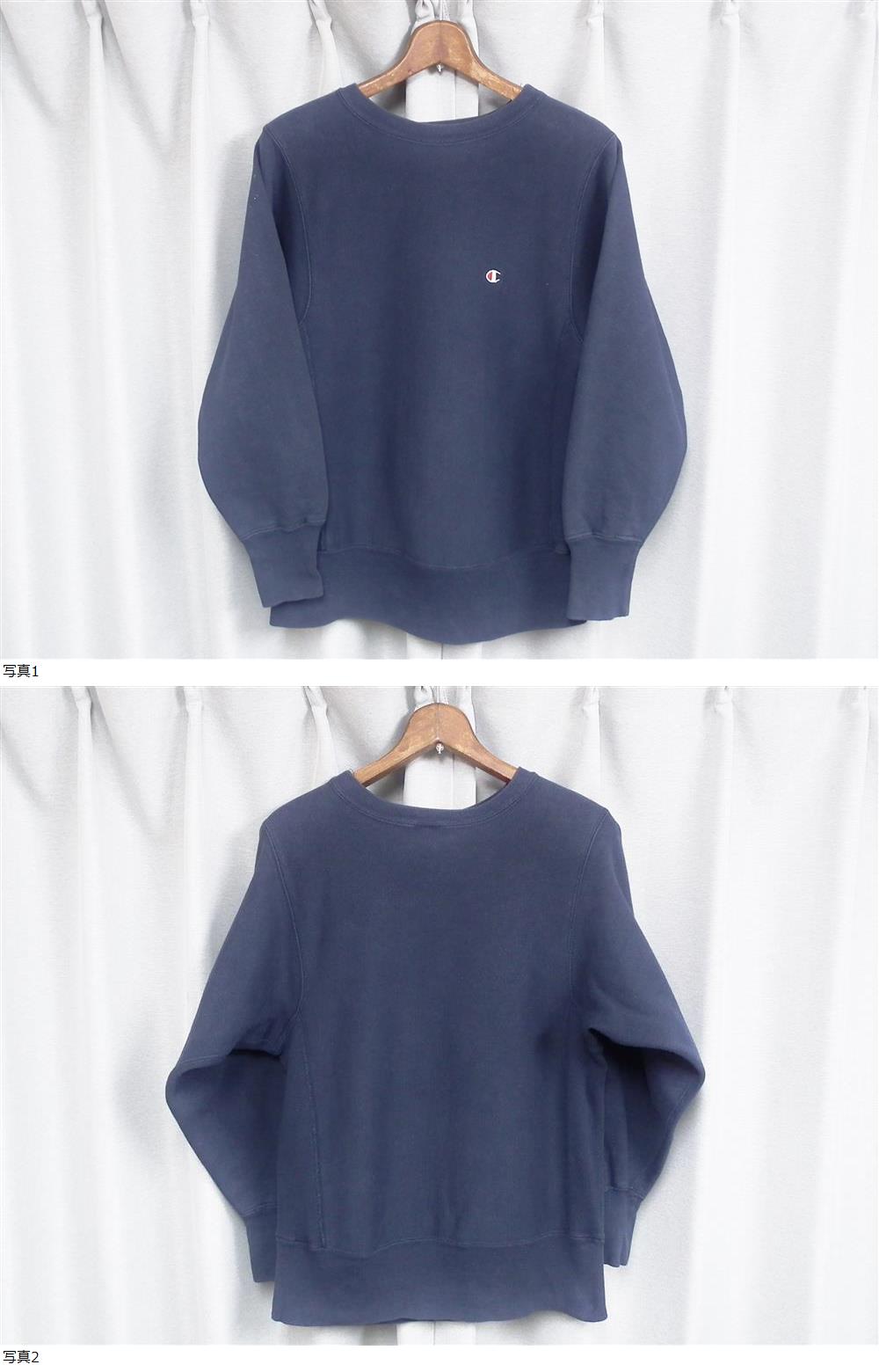 ◆90s 目付き 刺繍タグ◆Champion チャンピオン リバースウィーブ スウェット USA アメリカ製 ネイビー ヴィンテージ 女子にオススメサイズ 收藏