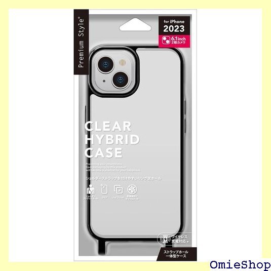 iPhone15 ショルダーストラップホール付クリアハイブリッドケース ブラック 1133 收藏