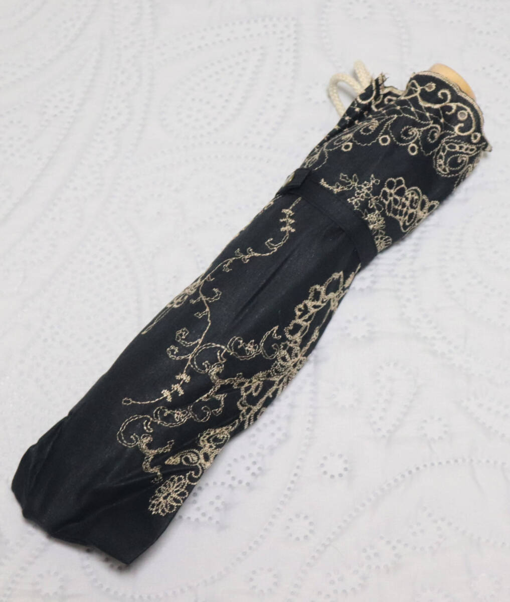 | 新品【晴雨兼用 折りたたみ傘 】麻混 繊細 高級感 豪華刺繍 雨傘 日傘 黒 v7376 |