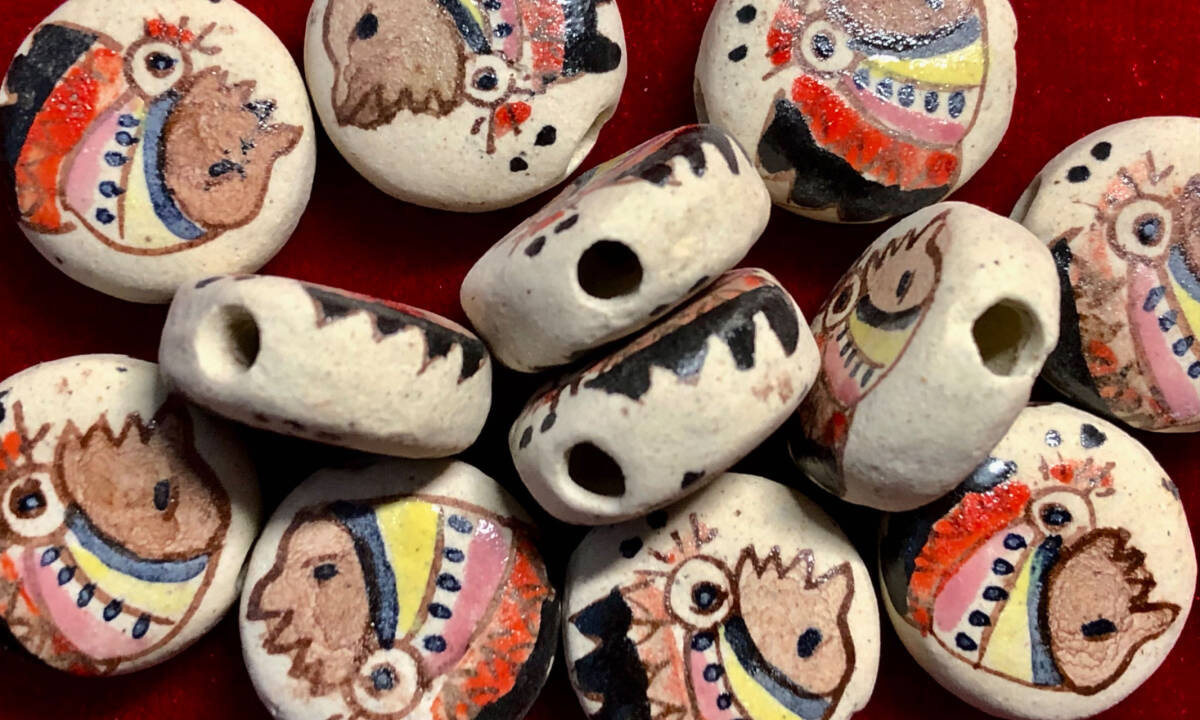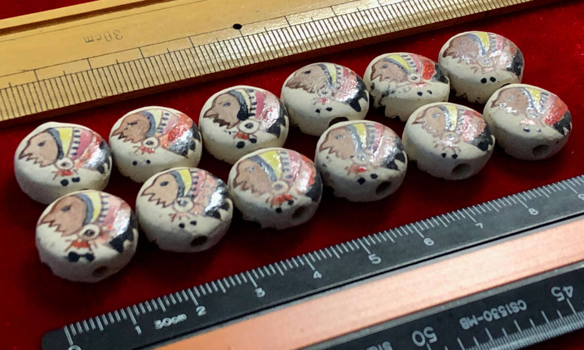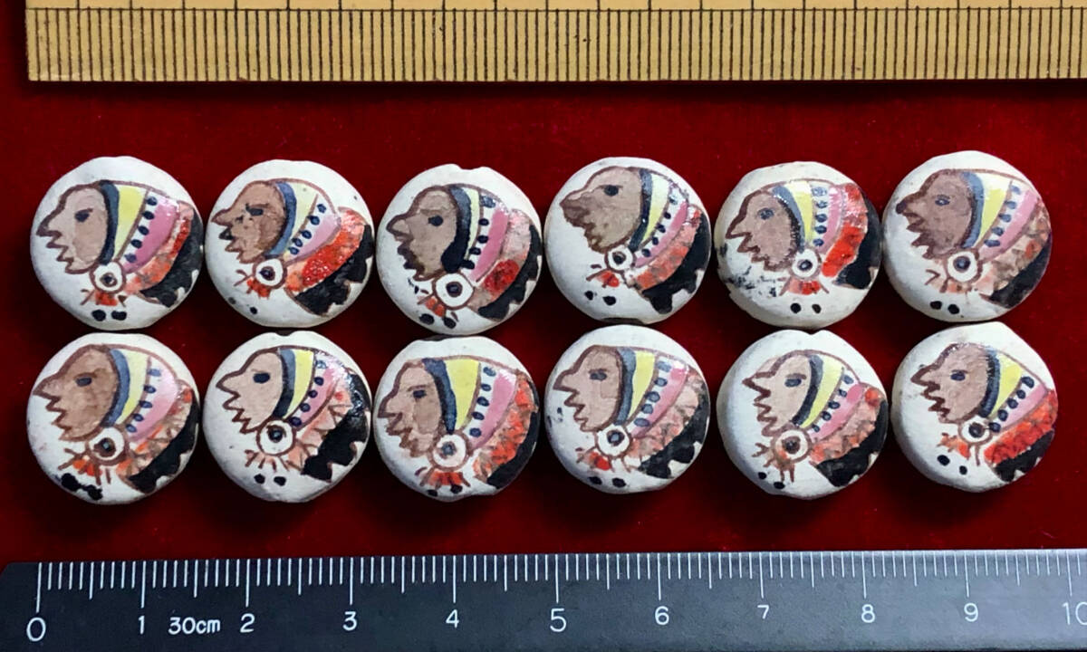 Φ 彩陶素焼ビーズ Φ 12玉で1単位 約7×17㎜扁円釦玉 手作り 人形紋様 手芸 アクセサリー インテリア、鑑賞魚水槽、園芸等材料に 收藏