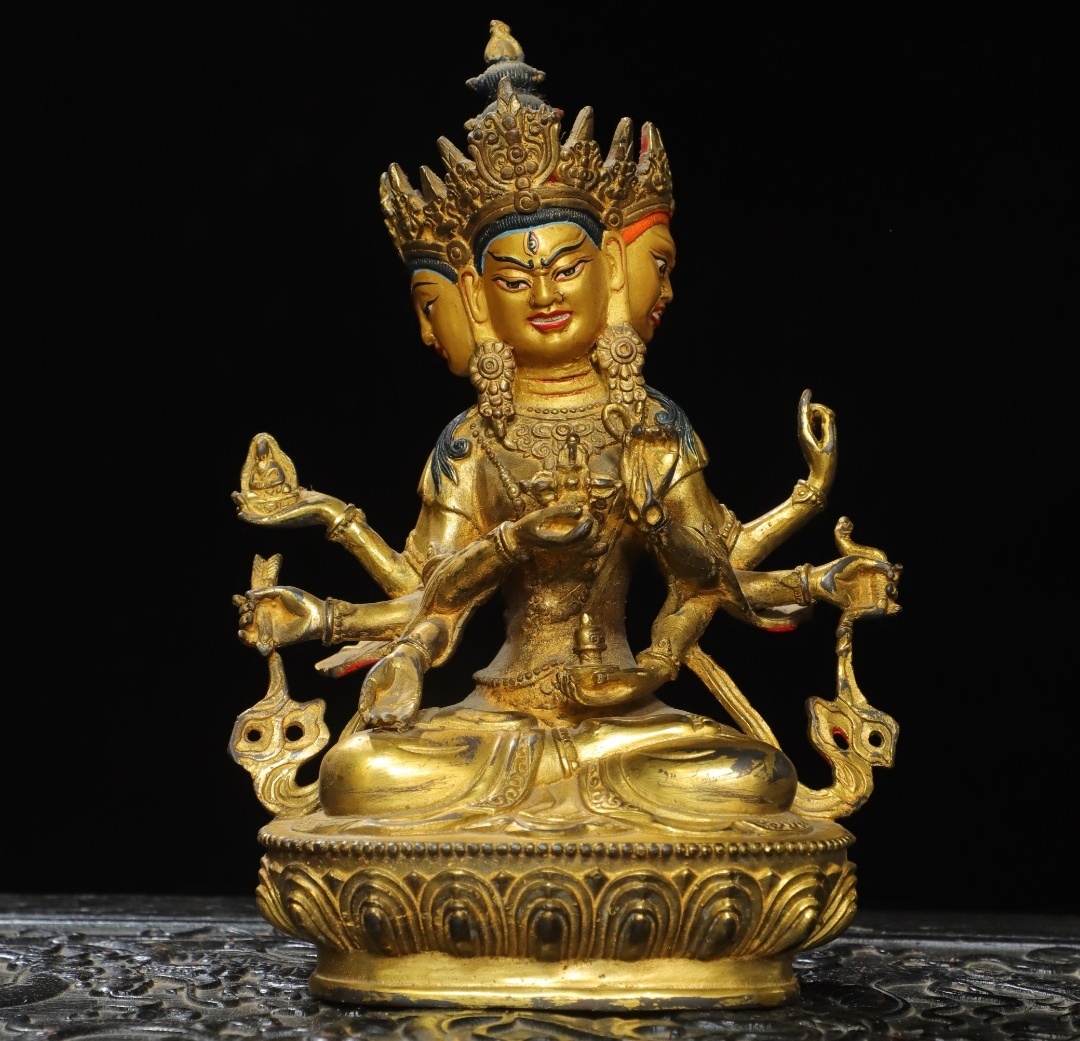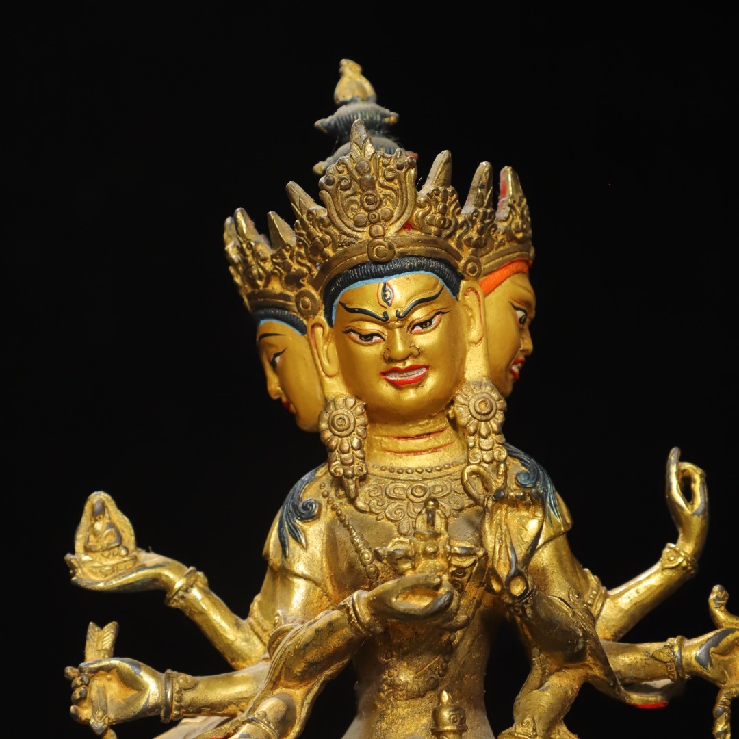 仏像 *珍品旧蔵* 清代 金画彩【尊勝仏母】仏像造像 の置物 奉納されていた 供養品 銅製品 銅器 唐物 中国古玩 骨董品 古美味fu8.7 收藏