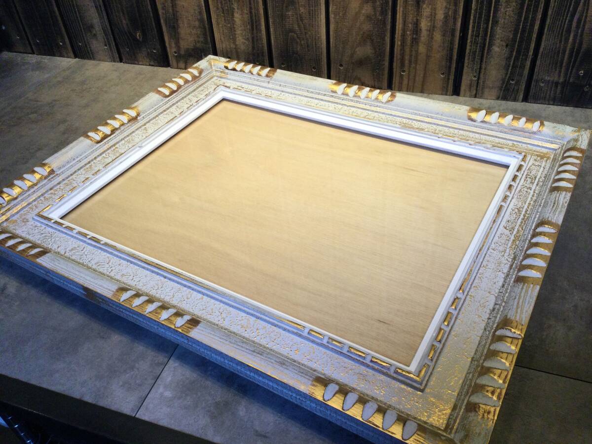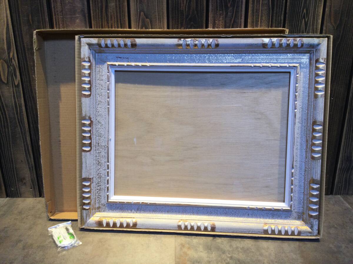 美品 東京文化刺 専用額 文化刺繍用額 木製額 3号木彫額 アートフレーム ガラス入り 木製 木枠 フレーム 刺 額装 白×金色 收藏