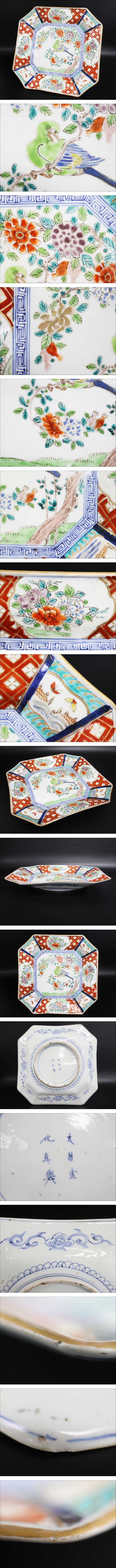 【行董】伊万里 染錦 色絵金彩 花鳥文 隅切皿 太明成化年製 径28.6cm 中国 陶磁器 美術品 陶芸 骨董品 骨董美術 AT240ABC57 收藏