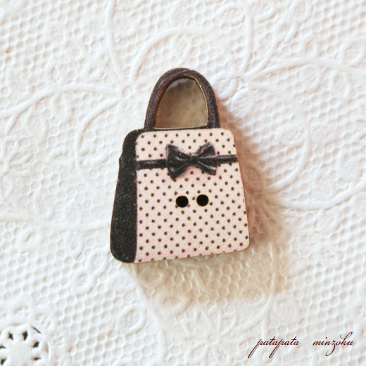 水玉のハンドバッグ フランス 製 木製ボタン アトリエ ボヌール ドゥ ジュール 小物 雑貨 パタミン ボタン 刺繍 ハンドメイド 收藏