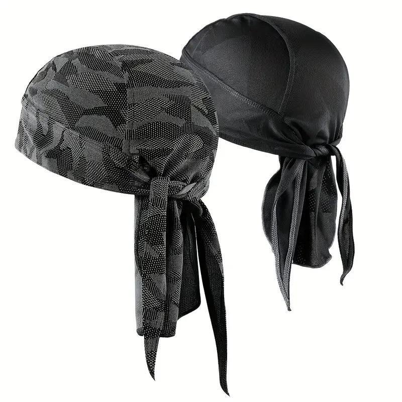 ★ライダーにお勧め!バンダナキャップ ストライプブラック + ブラック 2個セット 54-60cm メッシュ 伸縮 帽子 バンダナ (015-01+016-01) 收藏