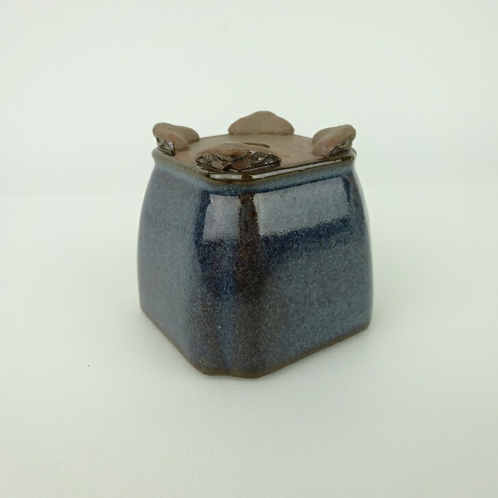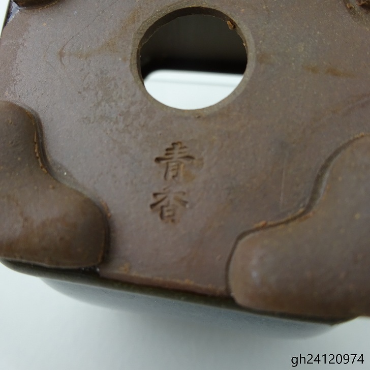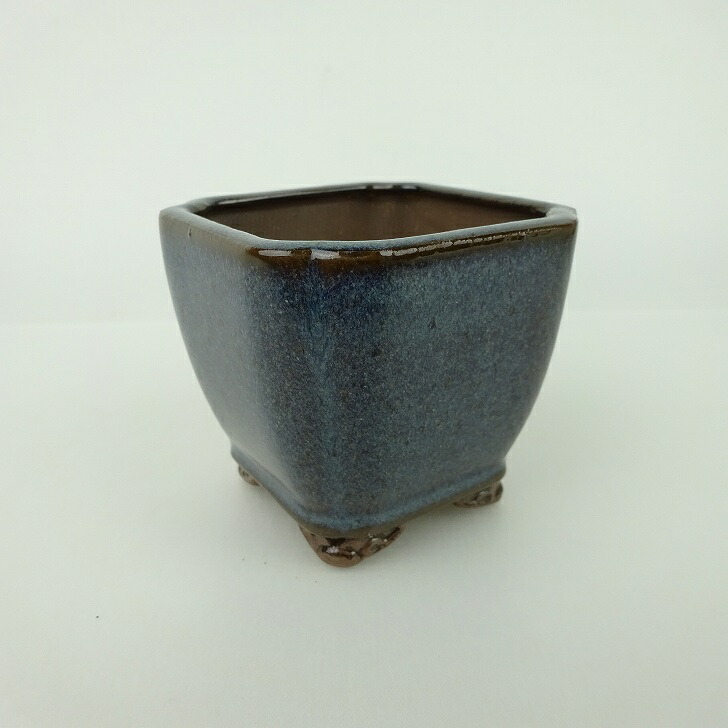 【中古】盆栽鉢 青香 小鉢 長辺 約6.5cm 正方鉢 隅入 雲足 下帯 釉薬 現品 中古鉢 收藏