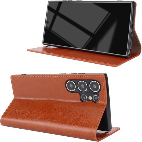 Galaxy S24 Ultra ケース 手帳型 マ 沢加工 牛革 レザー 財布型 カード入れ ライトブラウン 1335 收藏