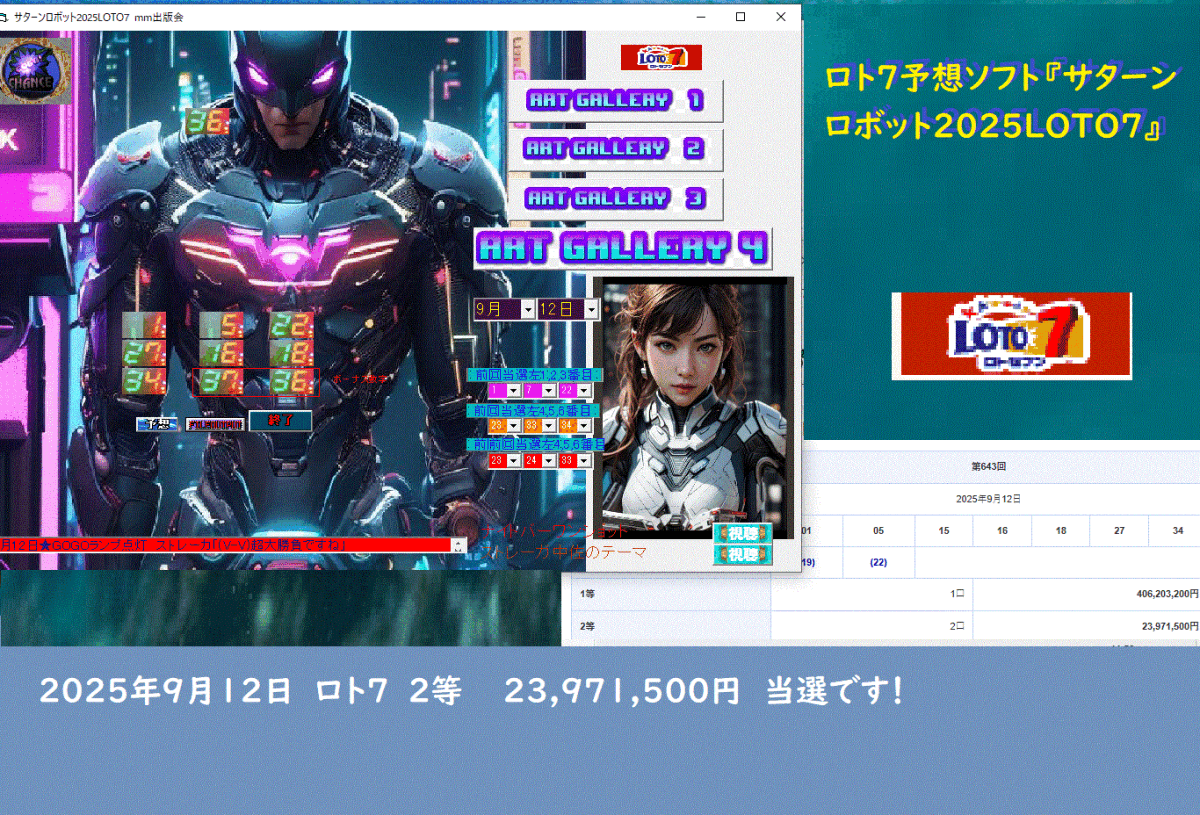 新作 ロト7予想ソフト『サターンロボット2025LOTO7』ご案内です♪