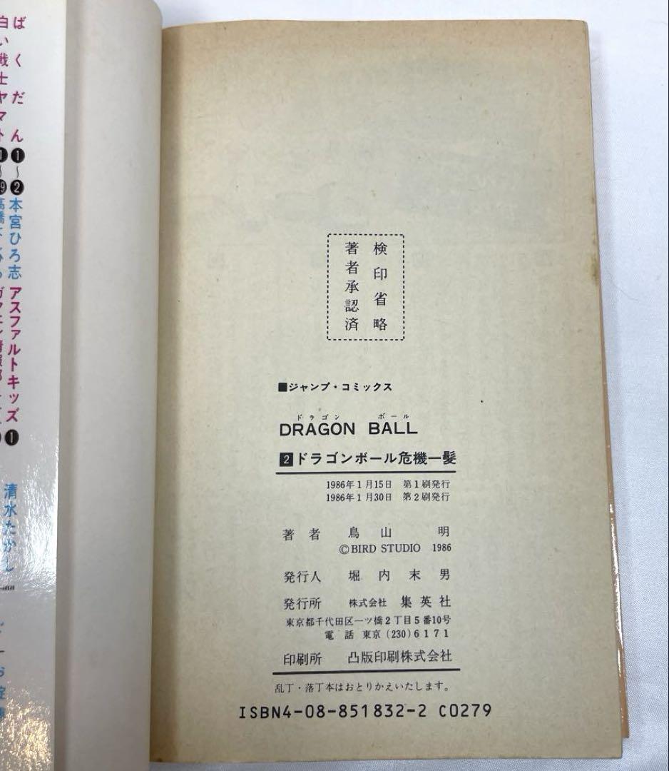 『ドラゴンボール』の2巻、貴重な2刷版です!