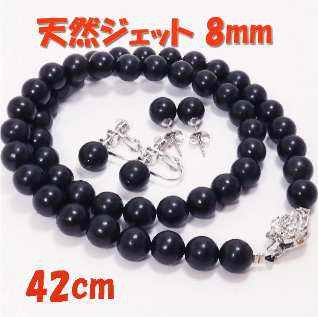 天然 ジェットネックレス・イヤリングorピアスセット8mm42cm / 即決 送料無料!A724 收藏