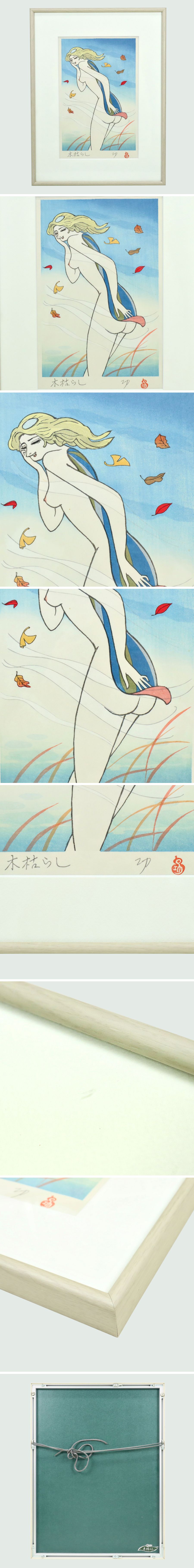 真作保証 小島功 「木枯らし」 木版画 約24.1×15.7cm 絵画 書画 骨董品 美術品 1276rdzN 收藏