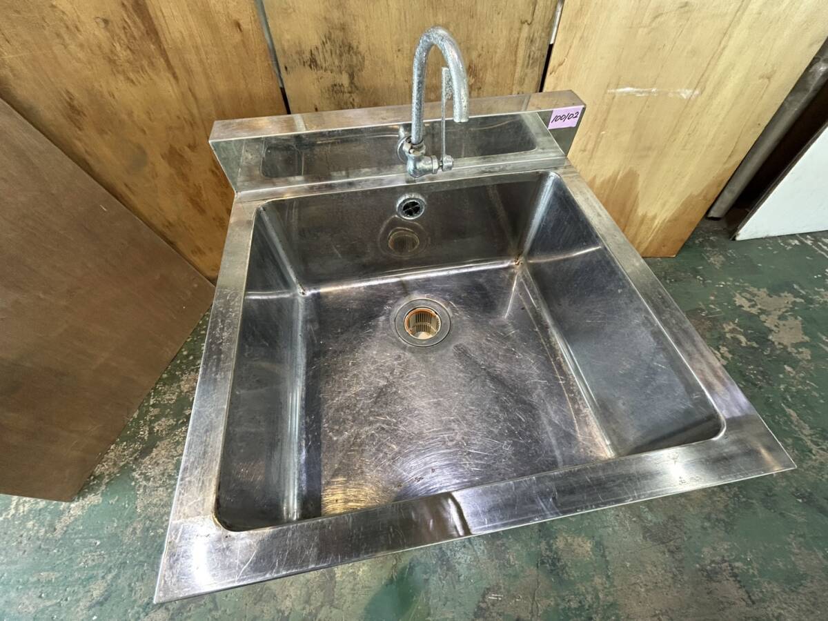 100102 業務用 ステンレス製シンク 手洗い流し台 水栓付き 亀裂2か所あり ジャンク扱い ガレージ車庫倉庫事務所に 西 收藏