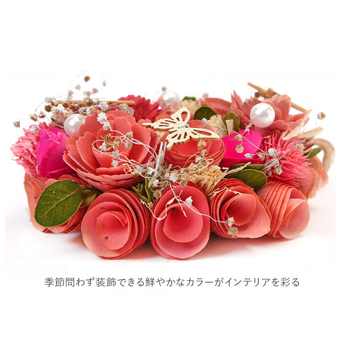 | 商品説明 | ・・手軽にお花の気分を味わえる♪フラワーリースが発売。 ・プリザーブドフラワー、造花、発泡スチロール等を用いて作られた手作りアイテム。 ・季節問わず装飾できる鮮やかなカラーがインテイリアを彩る。 ・専用のBOX付だから、大切な人への贈り物にもおすすめ。 |