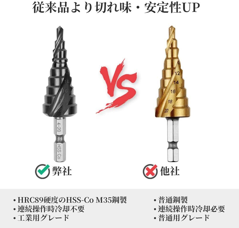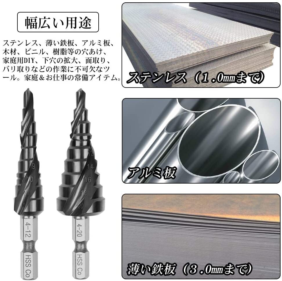 (A) ステップドリル ステンレス用 2個セット 六角軸ドリルビット 窒化チタンアルミコーティング スパイラル ドリル HSS-Co M35 收藏