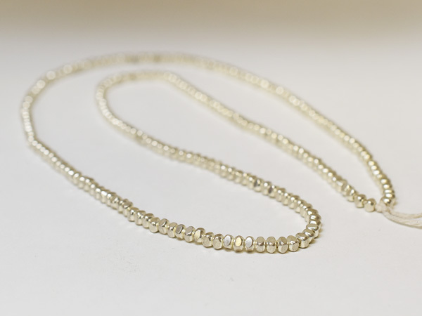 タイ北部やビルマの山村に暮らす山岳少数民族カレン族が作るシルバービーズ一連です。シルバー925製の緩やかな多面加工が施されたビーズです。ホワイトハーツビーズ等との相性が良いビーズです。大きさや重量には若干の個体差があります。バラでご購入いただくより約10%お得です。