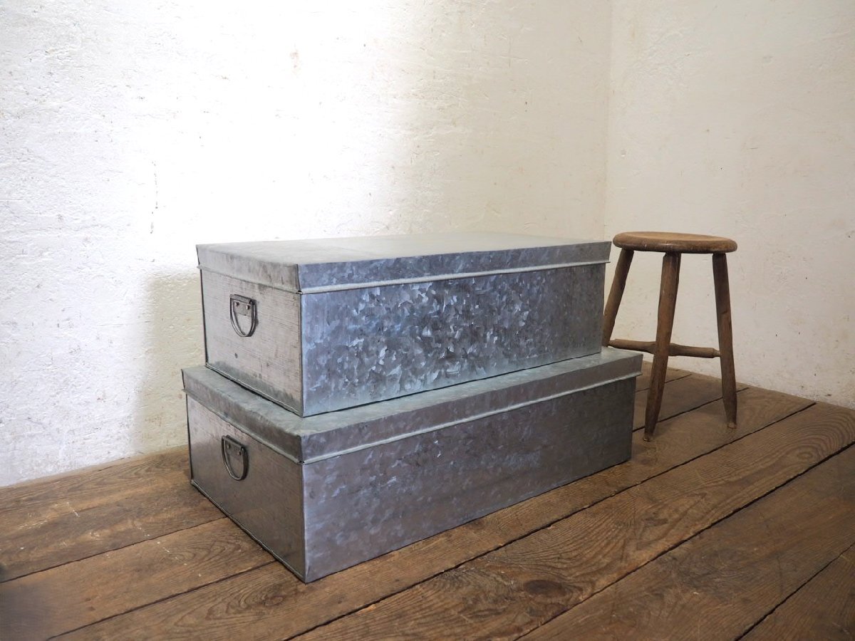 ユU0329◆2台セット◆ビンテージ◆蓋付きの古いブリキ缶◆工業系 収納 ボックス ケース コーヒーテーブル レトロ インダストリアルA笹4 收藏