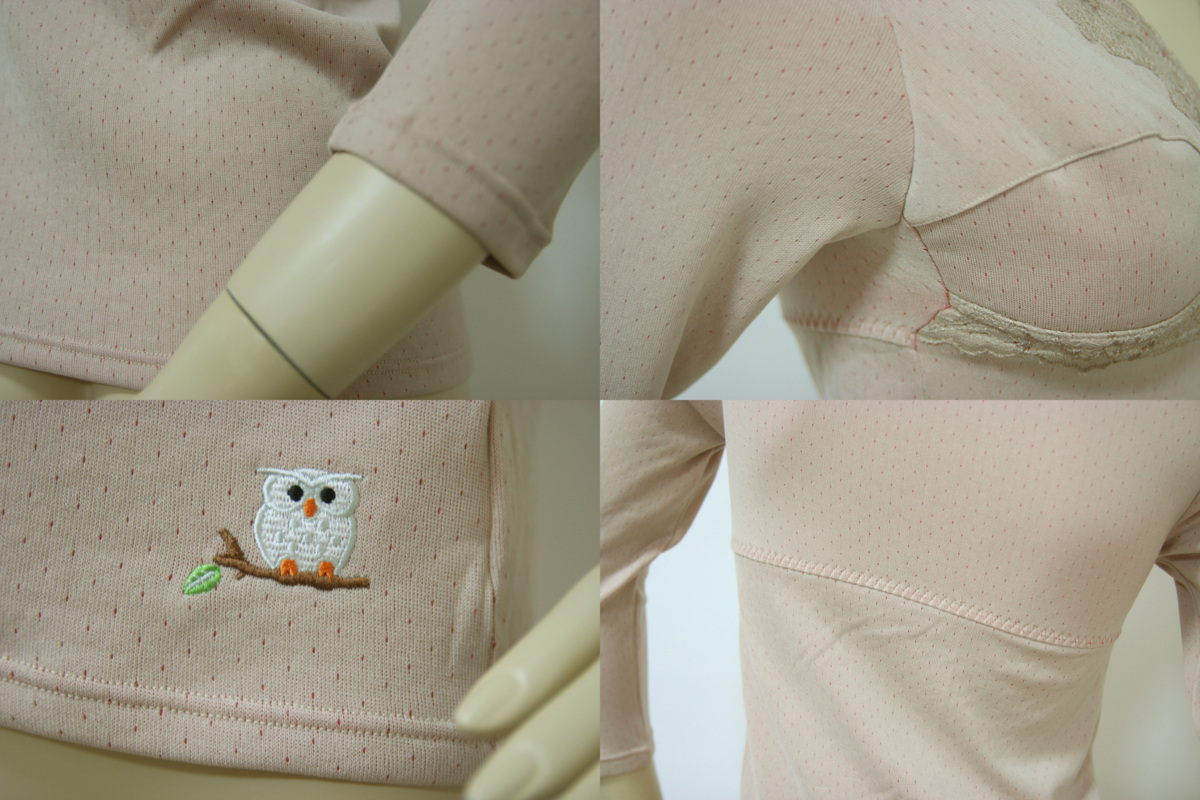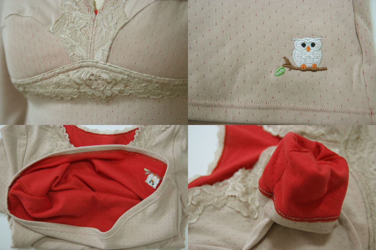 送料無料◆裏地:綿100%◆袋編み◆吸汗性&放湿性◆赤いパワー◆赤色縁起&健康肌着◆ふくろう刺繍◆ブラカップ付き長袖インナー(M/ベージュ) 收藏