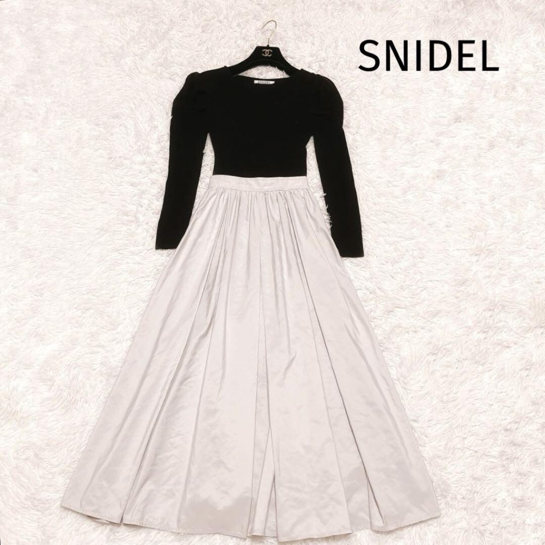 SNIDEL パワショル ニット ドッキング ワンピース ロング 長袖 フレア 收藏