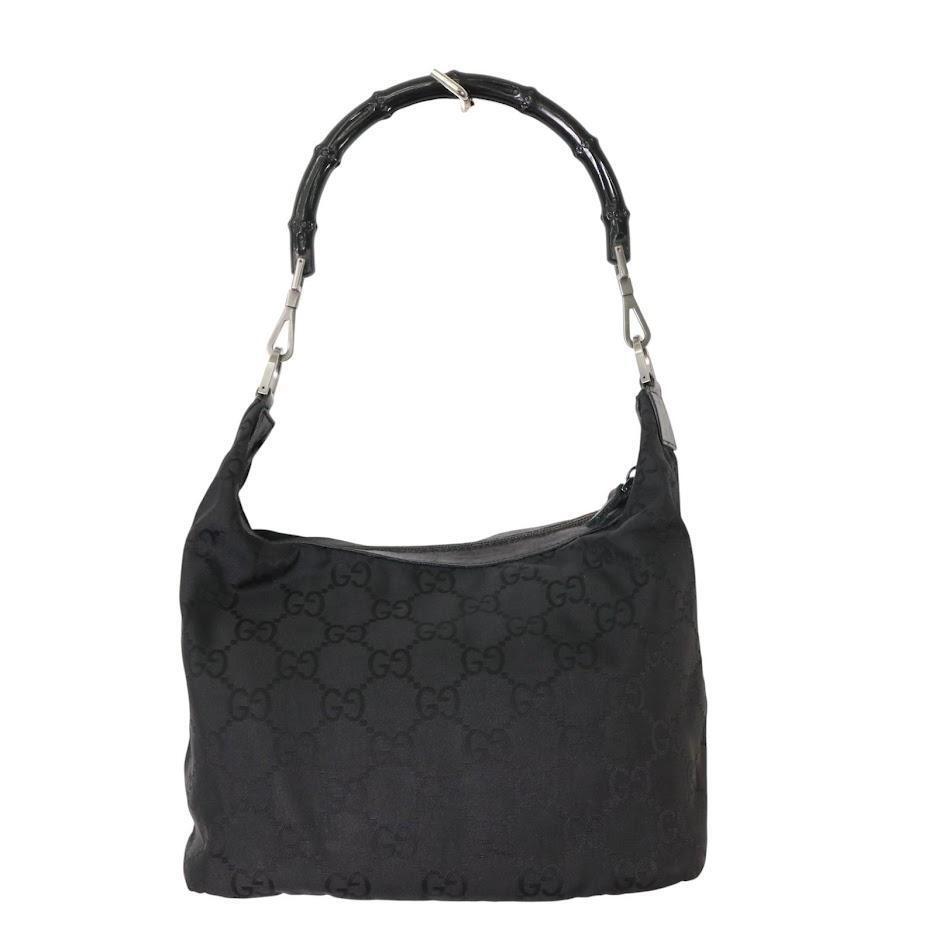 GUCCI グッチ バンブー 2WAY ワンショルダーバッグ アクセサリーポーチ 黒 GGキャンバス 金具 肩掛け 手提げ 通勤通学 旅行 レディース 收藏