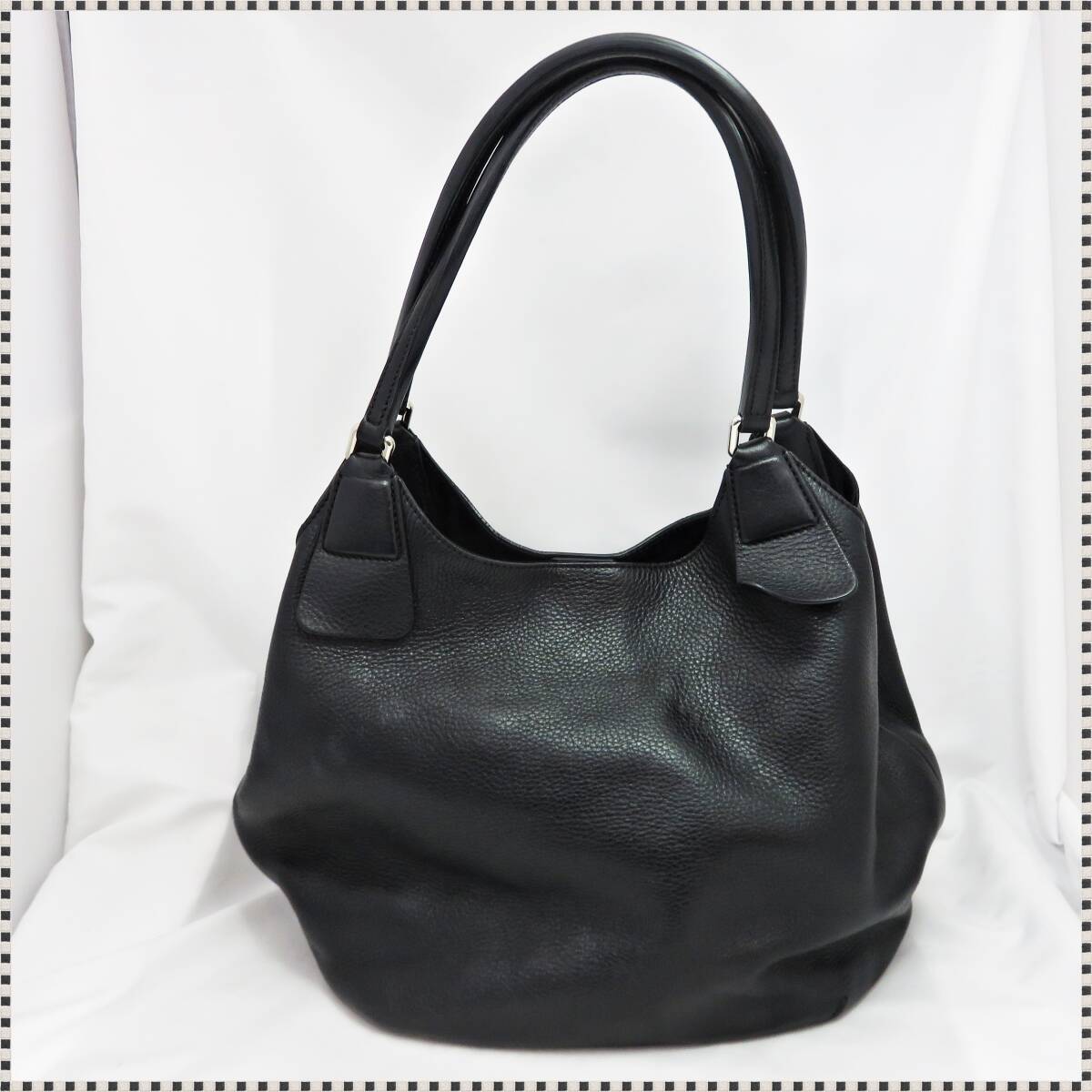 【 美品 】 ヒロフ レザー ショルダーバッグ トートバッグ Hロゴ型押し 2016371 黒 保存袋付 レディース HIROFU 102005 收藏