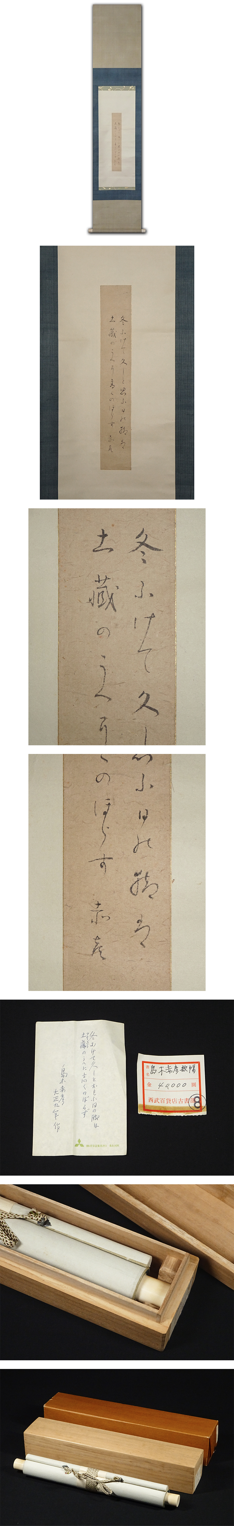 慶應◆【島木赤彦】真筆 和歌短冊『冬ゆけて』掛軸 西武百貨店古書部販売品 桐仕立て箱 アララギ派歌人 收藏
