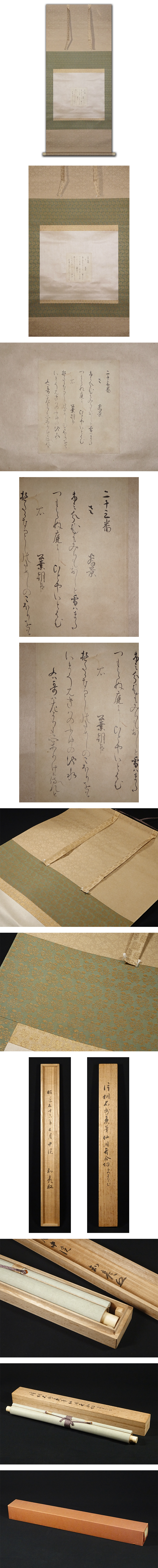 慶應◆【片桐石州】真筆 紙本墨蹟 色紙『仙洞歌合切』掛軸 堀江知彦極め箱 茶道石州流始祖 江戸時代前期の大名茶人 收藏