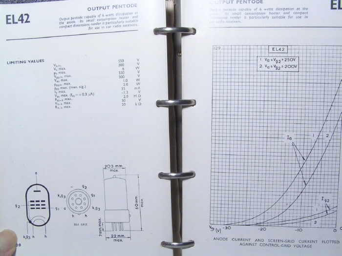 MULLARD(イギリス)のテクニカルハンドブックVOL.1です。 MULLARDが出版した4部構成のハンドブックのPart1にあたるもので(2枚目画像参照)、明確な出版時期は記載されていませんが、各ページに1959年からや1961年の表記が多くみられることから、その時期のものと考えられます。 もちろん当時のMULLARDオリジナル品です。 MULLARDの当時の一部の受信管(電池管やECC40などのリムロック管、サブミニチュア管も入っています)を掲載していて(当時の比較的新しい真空管中心)、それぞれについては、規格とかなり詳しい特性表が記載されています(1品種につき数ページ)。 大きさは、縦約22.5cm、横約17cm、厚(背表紙部分)約40mm、重さ約1.2kg。 金属製のリングファイル形式で、1枚1枚のページを取り出すこともできるようになっています。 各ページに番号が書かれていないため総ページ数は不明ながら、紙の部分の厚さが約3cmほどあります。 経年や使用により、紙(特に端部)には、それなりの傷みが見られ、一部書き込みもあります。 ノークレームでお願いします。