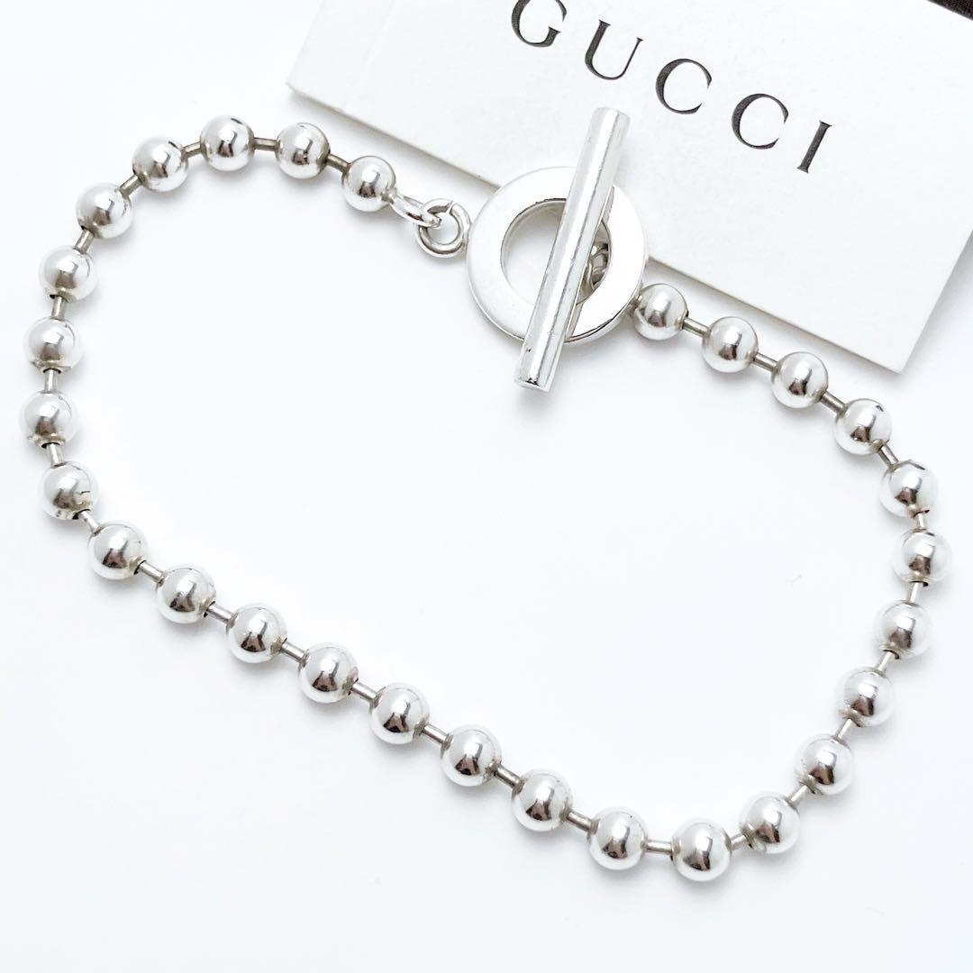 20洗浄済 グッチ GUCCI 925 ブレスレット シルバー ON461 アクセサリー ボールチェーン メンズ レディース 收藏