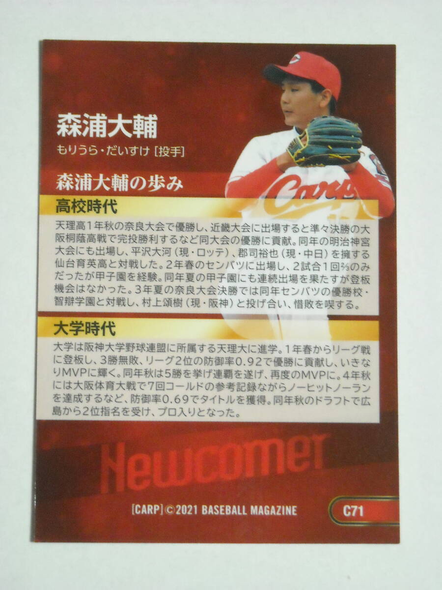 森浦大輔 #71 BBM 2021 広島東洋カープ 和歌山県新宮市 奈良:天理高等学校卒 通算防御率2.81 208イニング 收藏