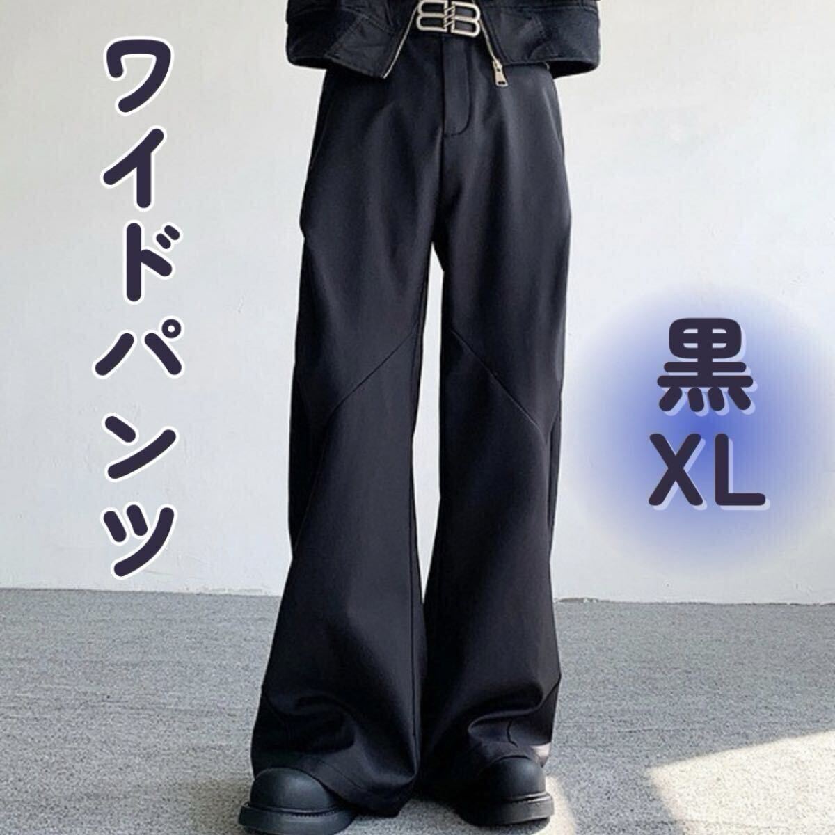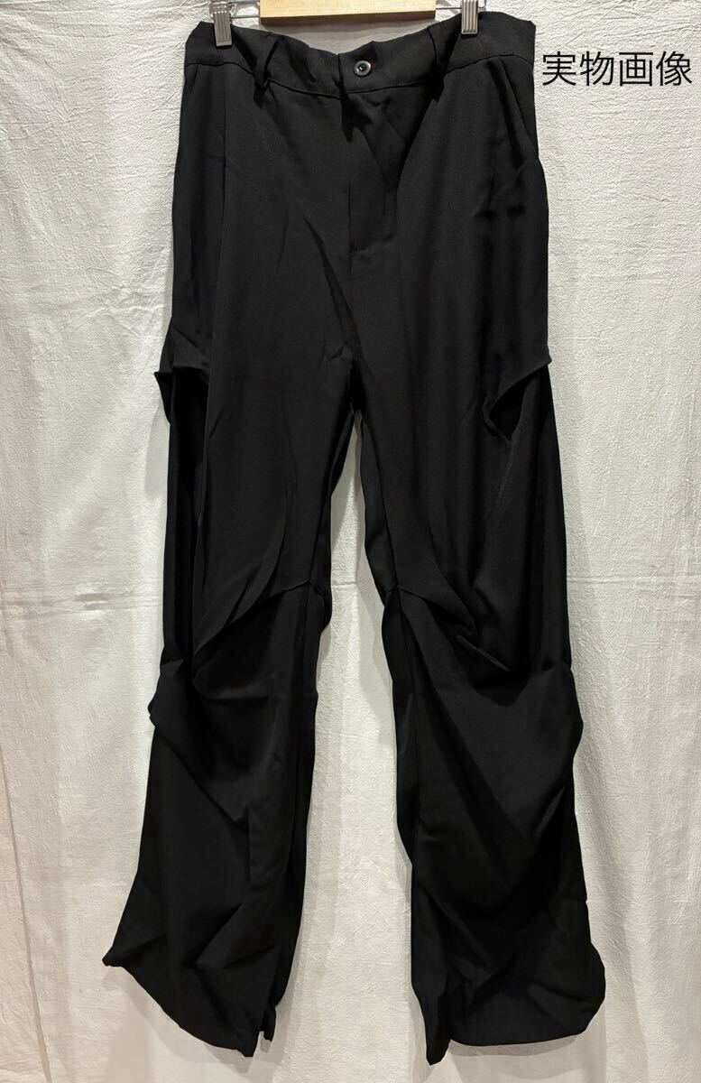 ワイドパンツ フレア スラックス 変形 ブラック Y2K グランジ XL タック 收藏