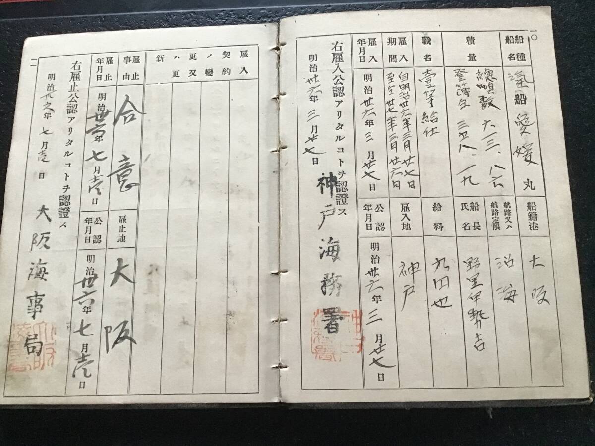 船員手帖 船員手帳 船員鑑札 在船証明書 隆熙 明治 大正 昭和 大阪海事局 浦賀海務署 神戸海務署 門司市役所 土生村役場 元山理事庁 汽船 收藏
