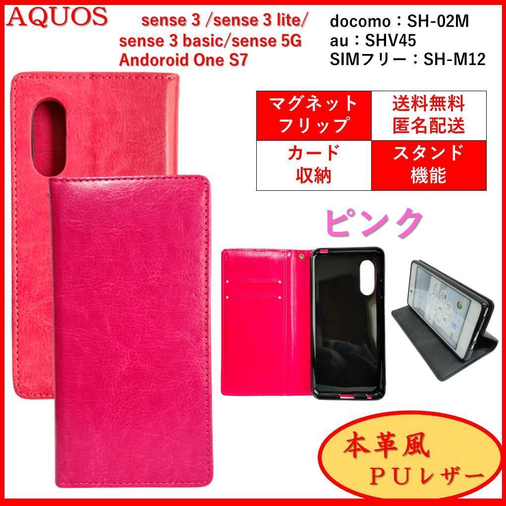 AQUOS sense 3 アクオスセンス Android One S7 スマホケース 手帳型 スマホカバー カードポケット シンプル オシャレ レザー風 ピンク 收藏