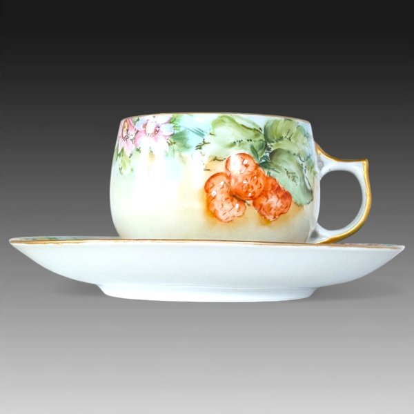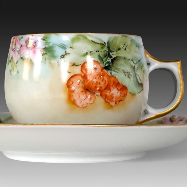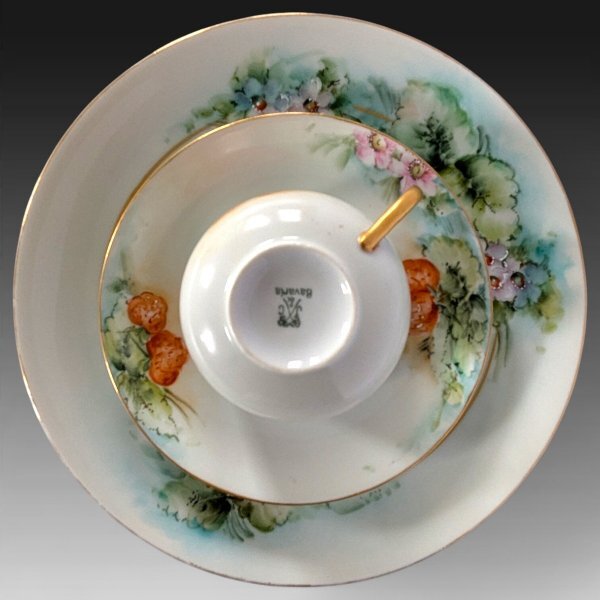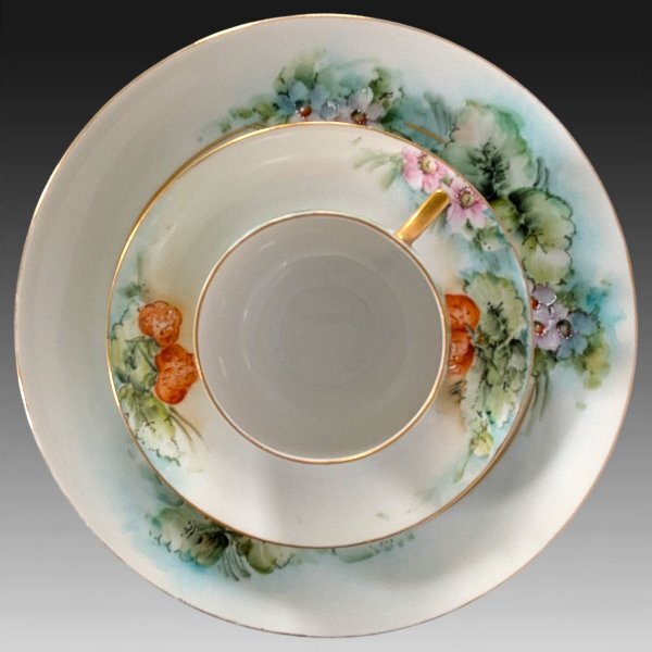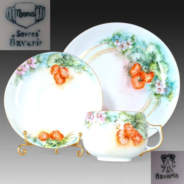 セーブル・ババリア 手描き花絵&金彩 カップ&ソーサー&ラージプレートセット パステル調エナメル装飾 1022 收藏