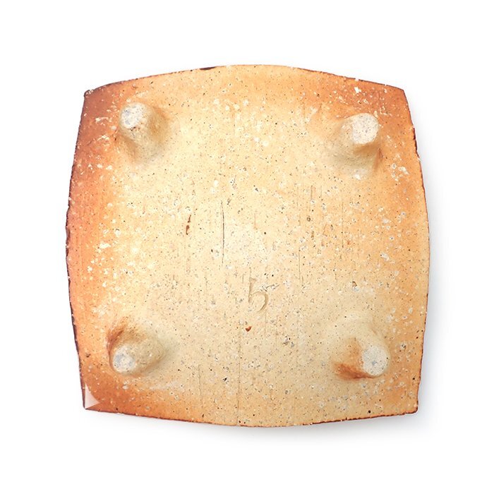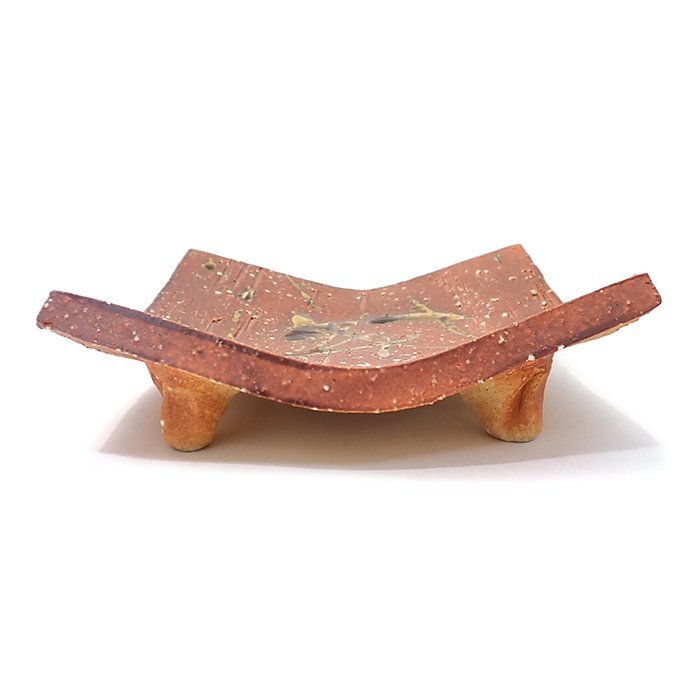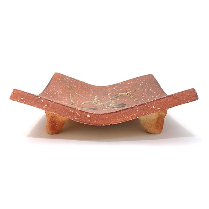 【骨董品】高橋楽斎(たかはしがくさい) 信楽焼 四方皿 四足脚 角皿 盛り皿 和食器 プレート ブラウン 茶色 陶印 工芸品 陶器 古美術 共箱 收藏