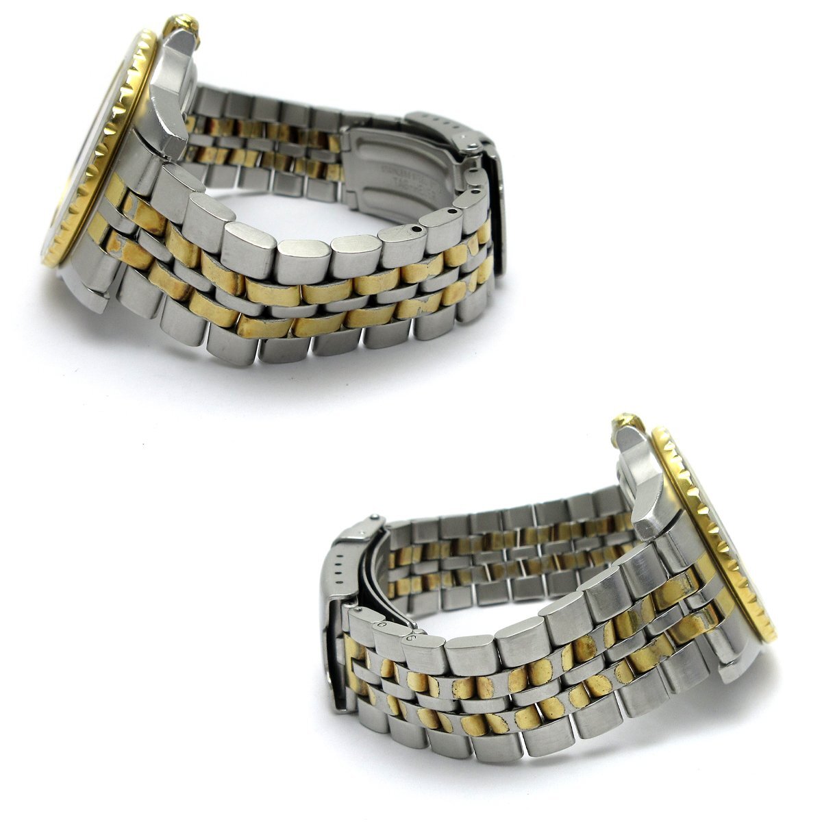 ■スイスの高級時計メーカー『タグ・ホイヤー(TAG Heuer)』。 ■『プロフェッショナル 2000』。 ■スポーティな風合いを踏襲し、ドレスウォッチとしても使える汎用性の高い時計。 ■ゴールドコンビの華やかなモデル。 ◎逆回転防止ベゼル。 ◎ねじ込みリューズロック。 ◎カレンダー。 ◎スクリューバック。 ◎フリップロックつきDバックル。 ---【商品状態】--- ☆不動品ですが、指針操作、カレンダー操作は可能。 ☆外装、クリーニング済、小キズ、メッキハゲがあります。 ☆ガラスにキズがあります。 ☆ベゼル、退色、キズがあります。 ☆リューズ先端に欠けがあります。 ☆夜光にヤケ、針にシミがあります。 ☆ブレスサイズはコマ調整にて短くする事ができます。 ☆200M防水規格ですが中古商品のため防水性の保障はつきませんのでご了承ください。 ※商品画像はお客様のモニター環境によっては色調が異なって見える場合がございますのでご了承ください。 |